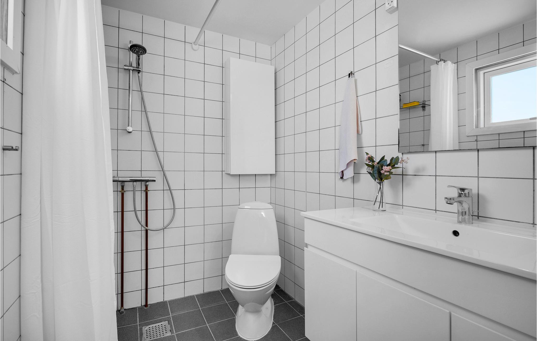 Badeværelse (nr. 1) - WC. Varmt og koldt vand. Bruser