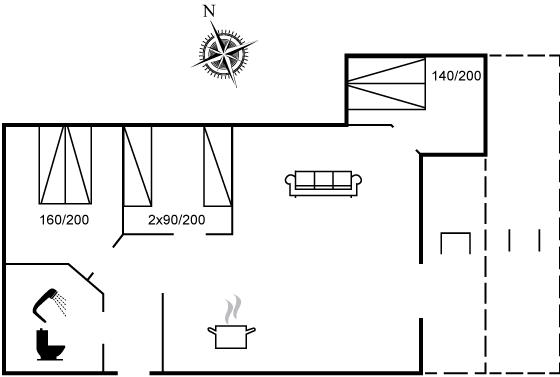 Der er i alt 3 soveværelser. Sovepladserne fordeler sig på: 6 sovepladser i dobbeltsenge.
