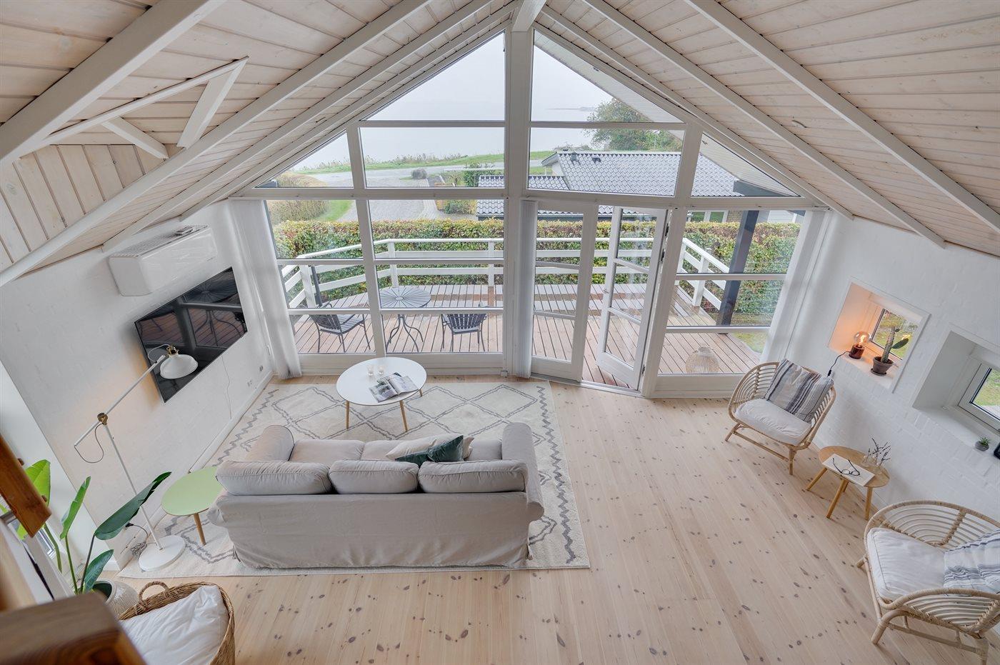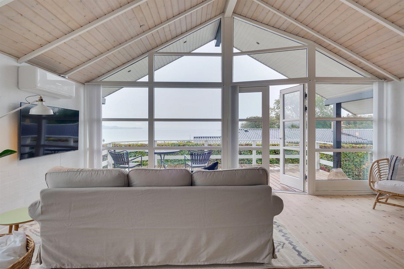 Flot sommerhus med panoramaudsigt over Vemmingbund og indendørs spa til afslapning.