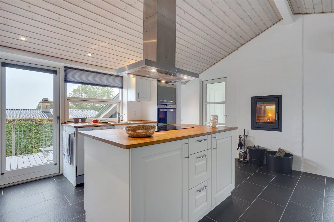 Køkkenet er udstyret med 1 køleskab. Der er 4 induktionskogeplader, varmluftovn, mikrobølgeovn samt opvaskemaskine.