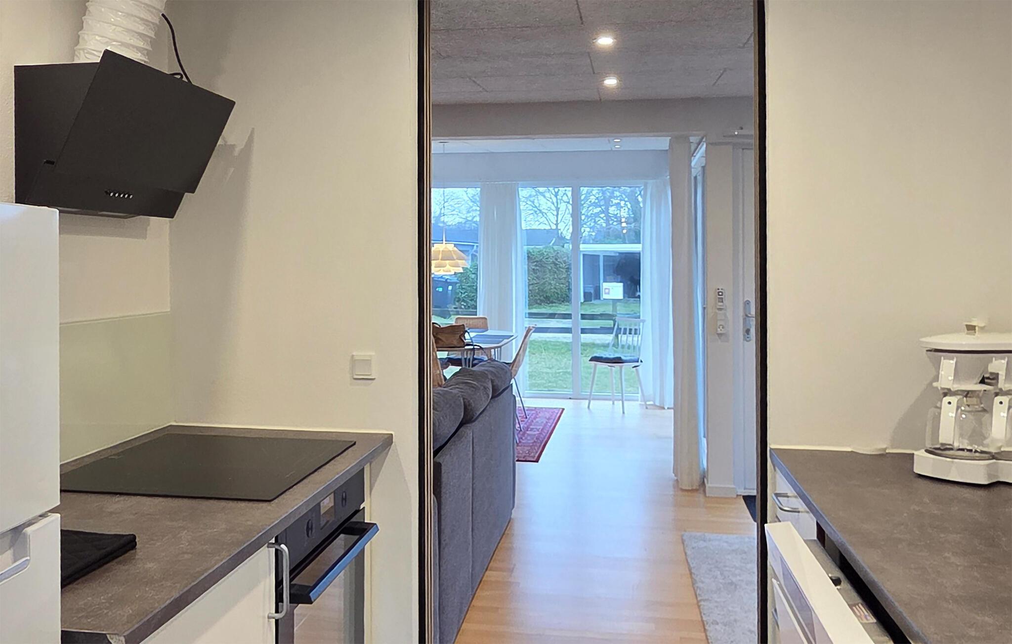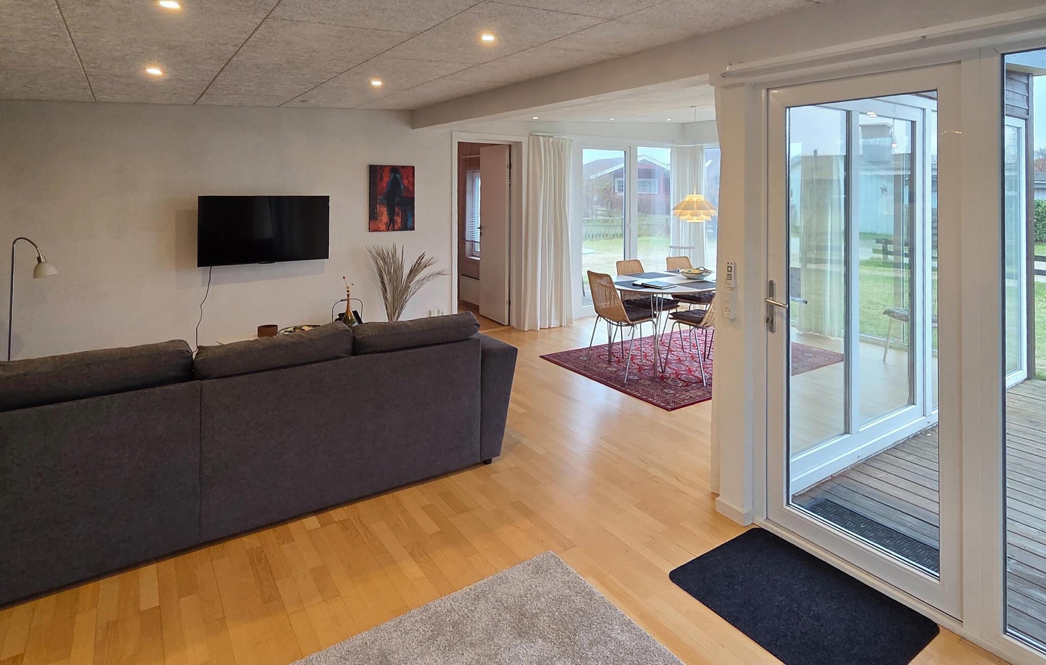 Et hyggeligt indrettet feriehus venter jer, der har alt, hvad I skal bruge til et vellykket ophold. Nyd den rolige beliggenhed og den hurtige adgang til stranden. De store vinduer gør stuen lys og indbydende. Gør jer komfortable i det hyggelige siddeområde eller sæt jer sammen ved spisebordet. Tilbered jeres måltider i det praktiske, separate køkken.