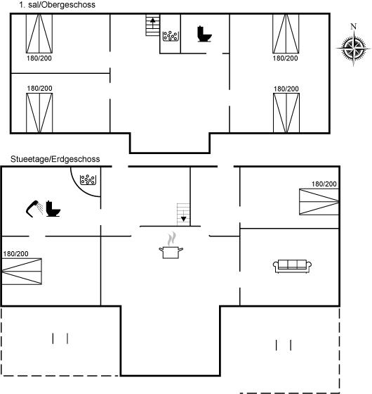 Der er i alt 5 soveværelser. Sovepladserne fordeler sig på: 10 sovepladser i dobbeltsenge. Derudover er der 1 stk. barneseng.