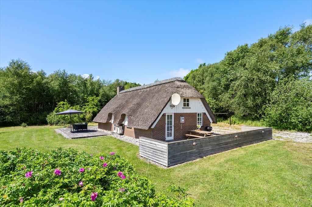 Hyggeligt sommerhus i Vester Husby med brændeovn, internet og stor naturgrund, ideelt til familie og hund.