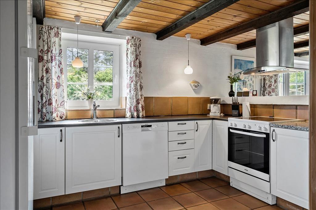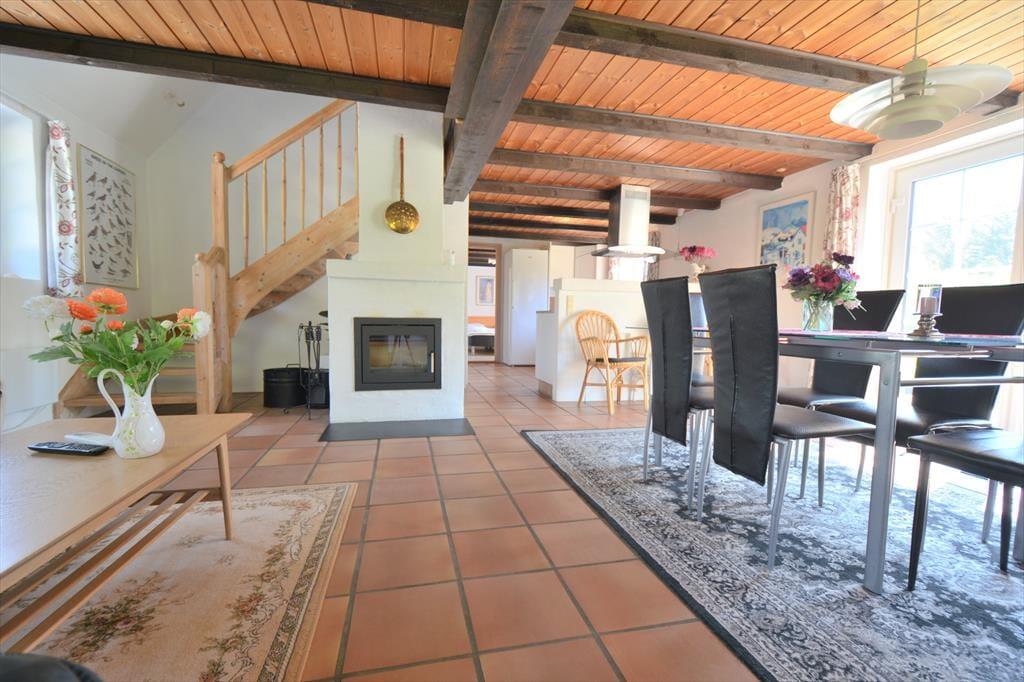 Blomstrede detaljer pryder huset og giver en fantastisk hyggelig og hjemlig stemning igennem hele huset. Lad maden simre i det pæne og godt udstyrede køkken der ligger i åben forbindelse med spiseafdelingen og opholdsstuen, på den måde kan I altid holde øje med maden og ikke være bekymret for at den brænder på. Sæt jer i det hyggelige hyggehjørne tæt på brændeovnen og nyd den fantastiske varme og den hyggelige knitrende lyd. Trænger I til total afslapning kan I tænde op for det herlige spabad og nyde dens varme vand der blidt omfavner jer, skulderne sænkes og musklerne slapper af i det varme vand, her er der tid til at koble af.