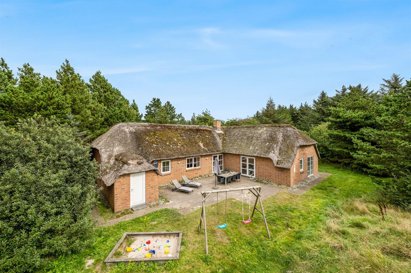 Huset er endvidere udstyret med barneseng og høj barnestol. På grunden er der sandkasse og gynge til børnene.