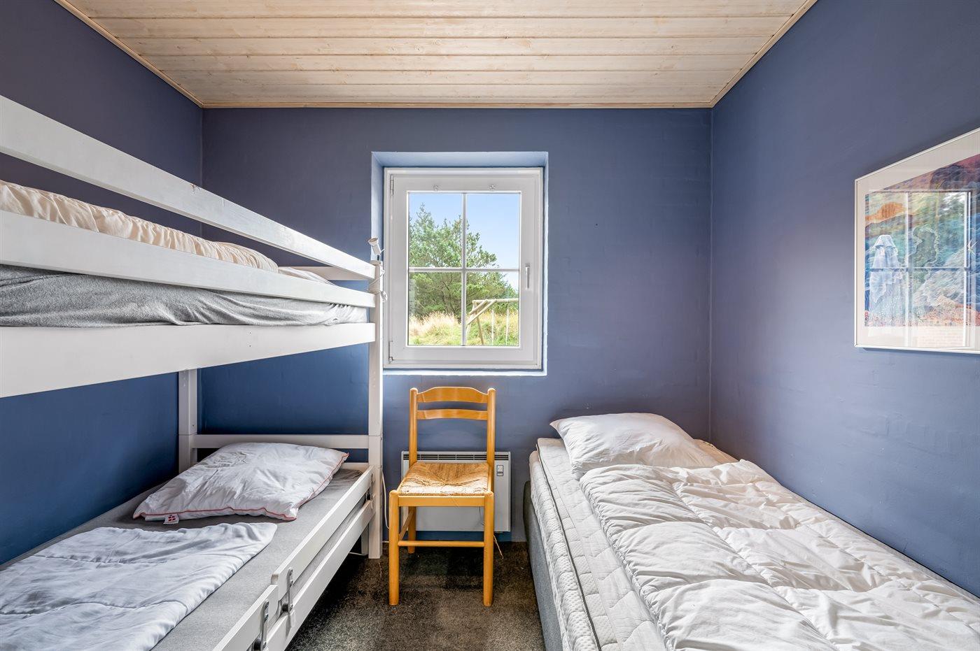 Til huset hører 6 gode soveværelser; 4 med dobbeltseng og 2 med hver 1 køjeseng og 1 enkeltseng.