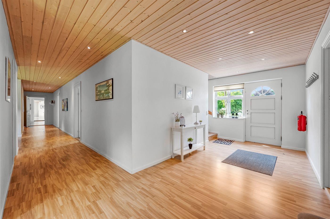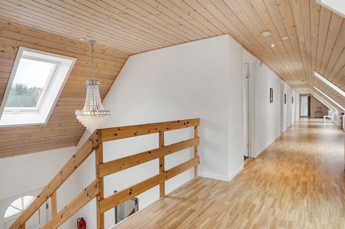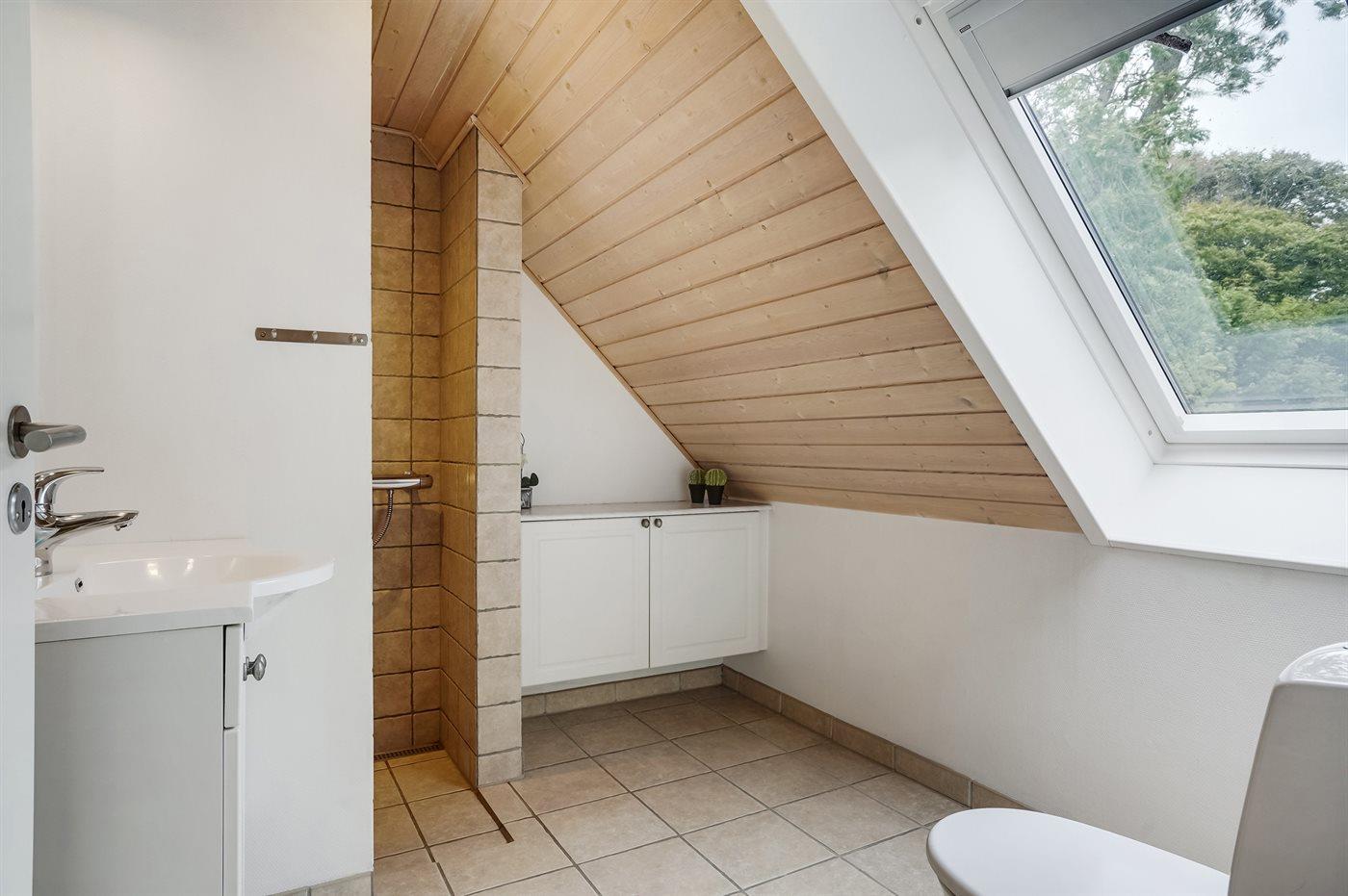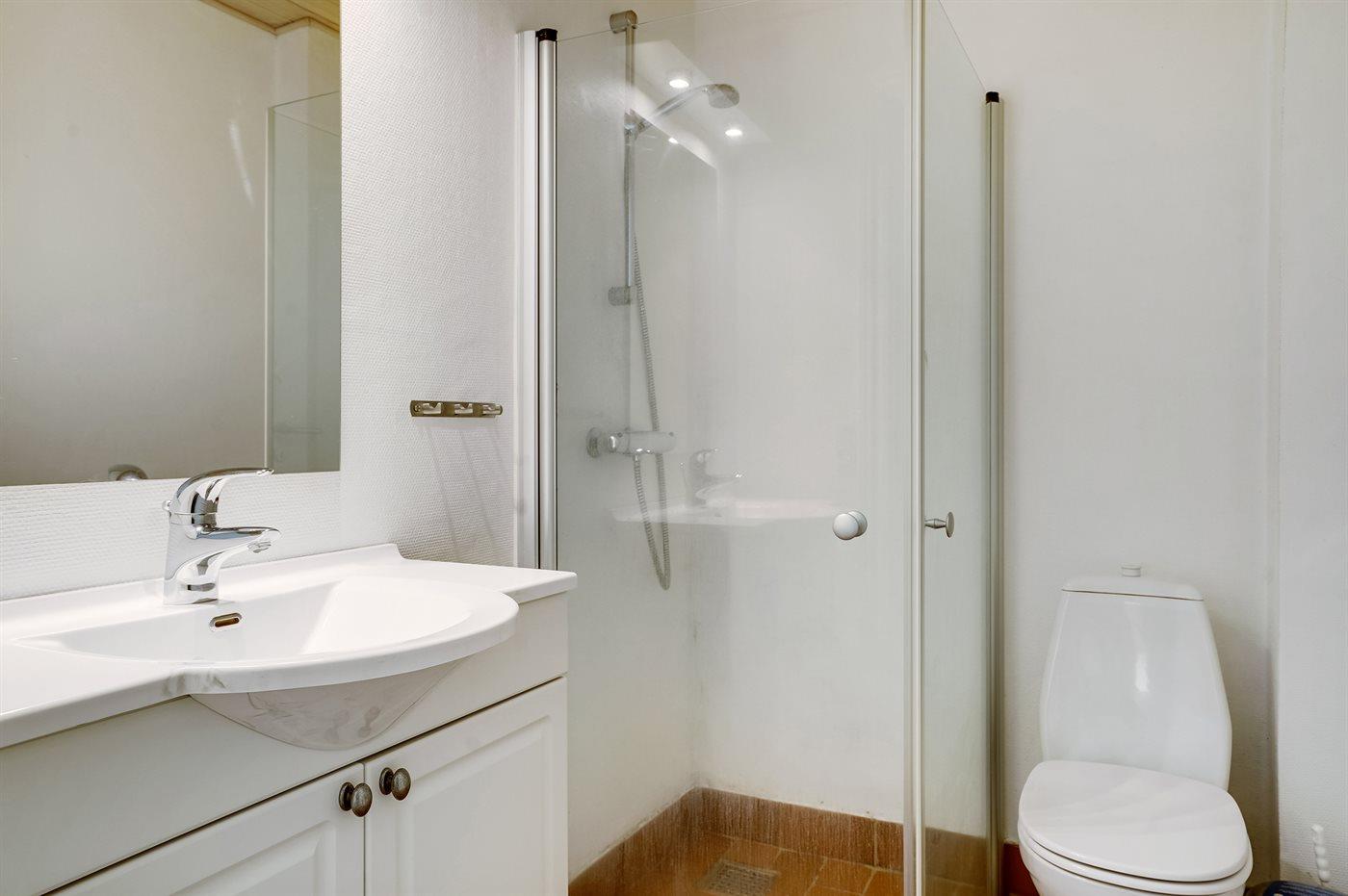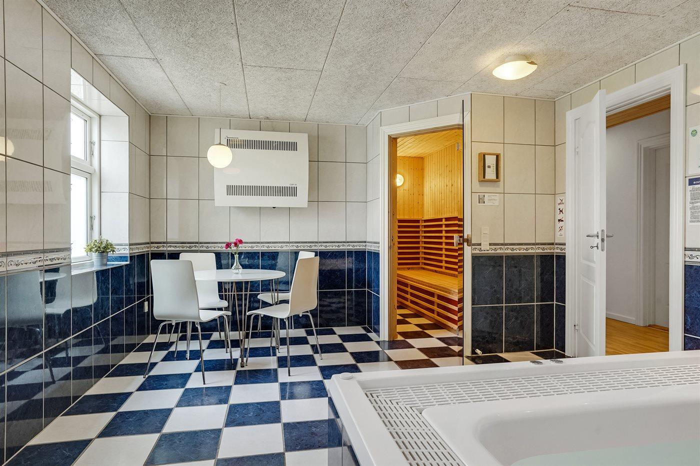 Der er 5 badeværelser med bruseniche og 5 toiletter. Der er gulvvarme på 1 badeværelse. I saunaen er der mulighed for afslapning.