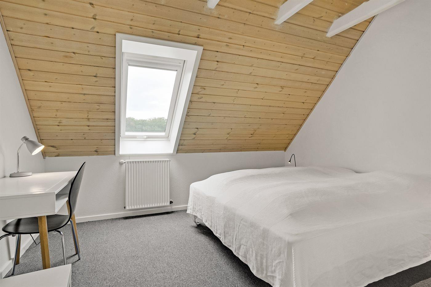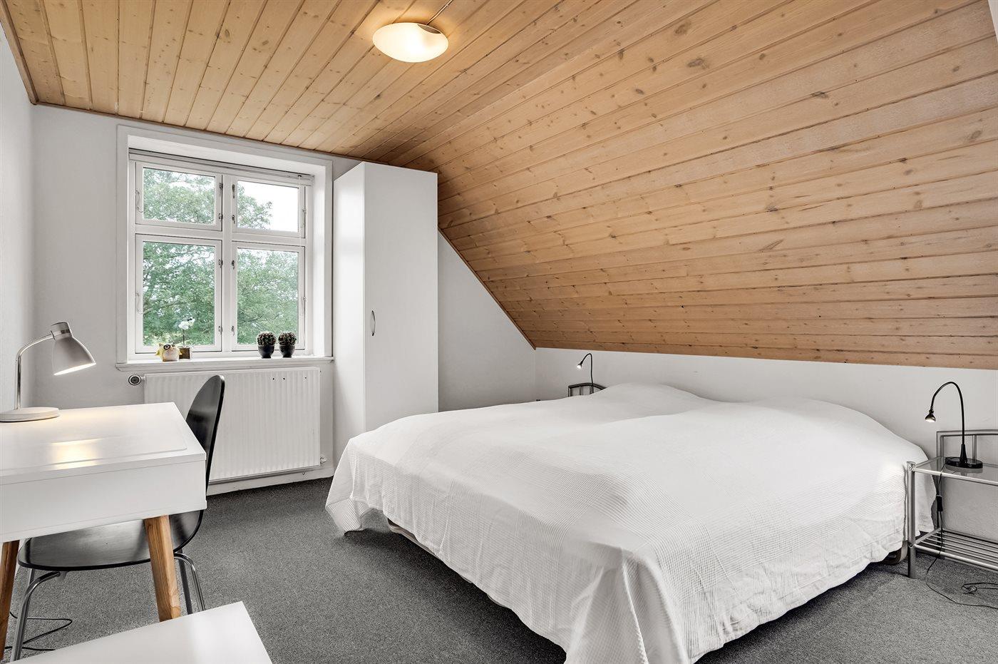 Der er i alt 9 soveværelser. Sovepladserne fordeler sig på: 12 sovepladser i dobbeltsenge. 6 sovepladser i enkeltsenge. 2 sovepladser i sovesofa (dobbelt). Derudover er der 2 stk. barnesenge.