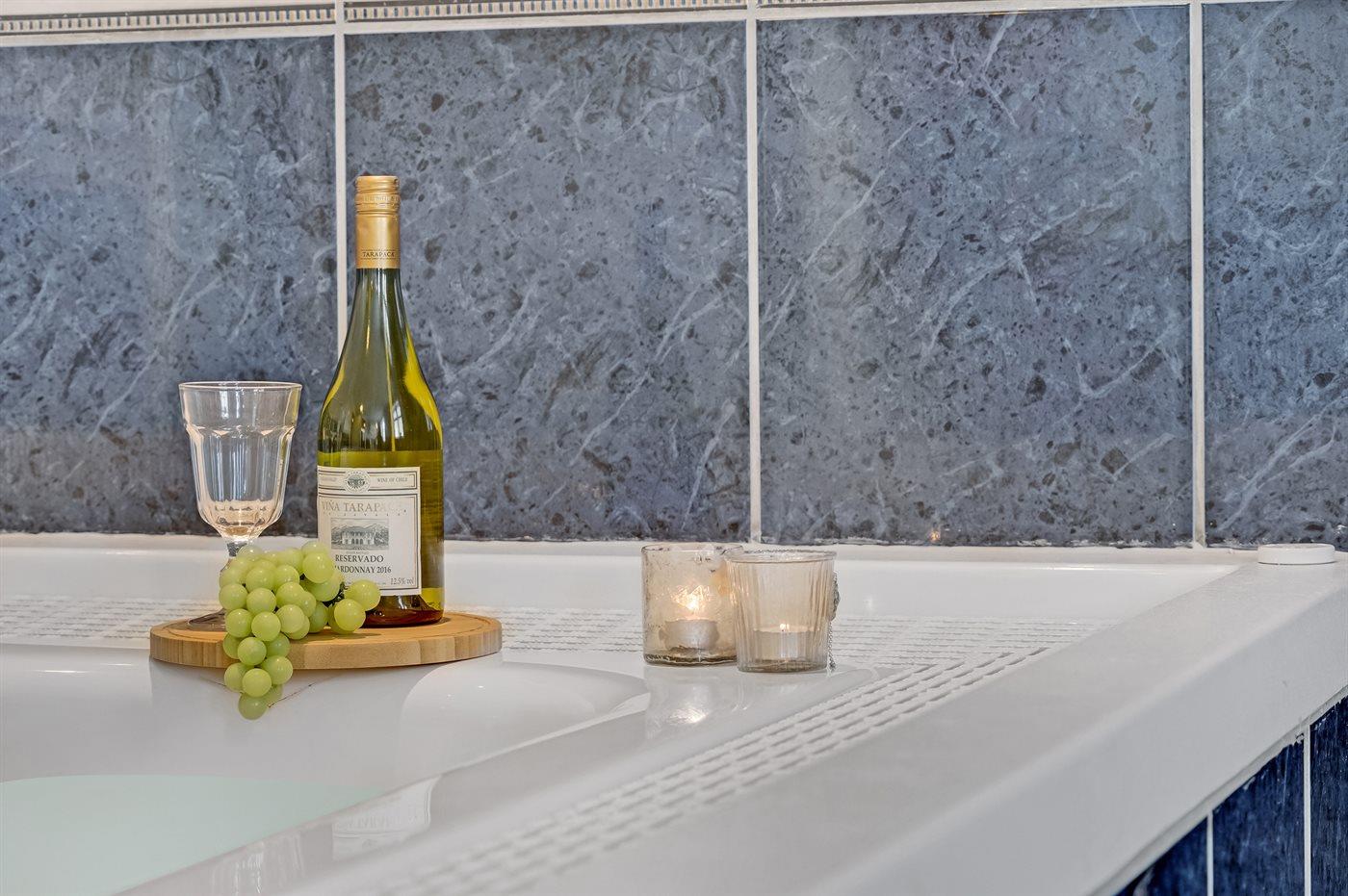 I den indendørs standvandsspa er der plads til 8 personer.