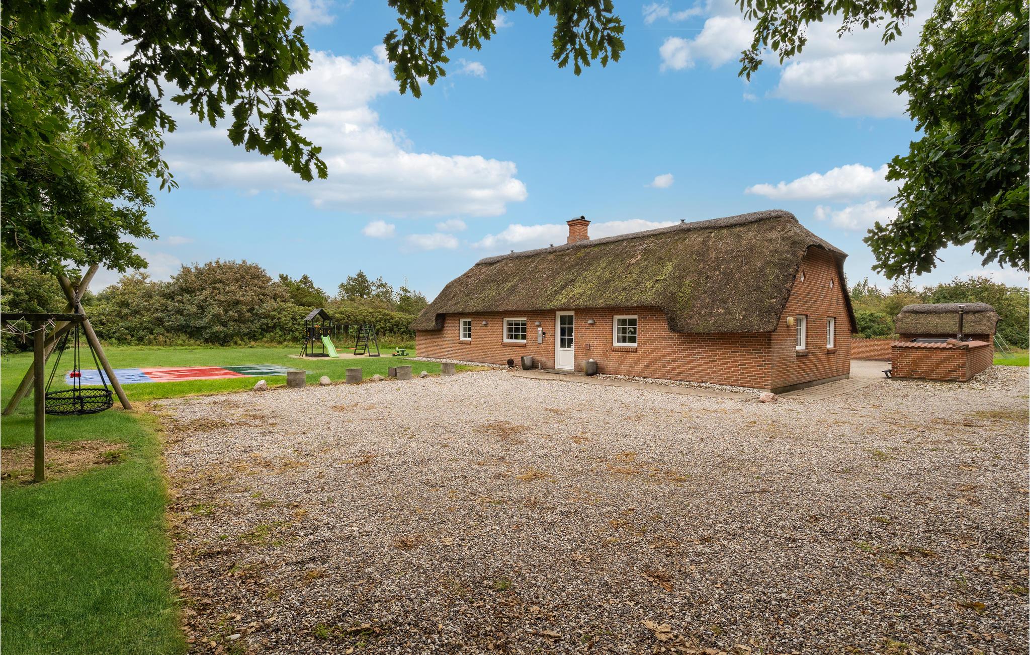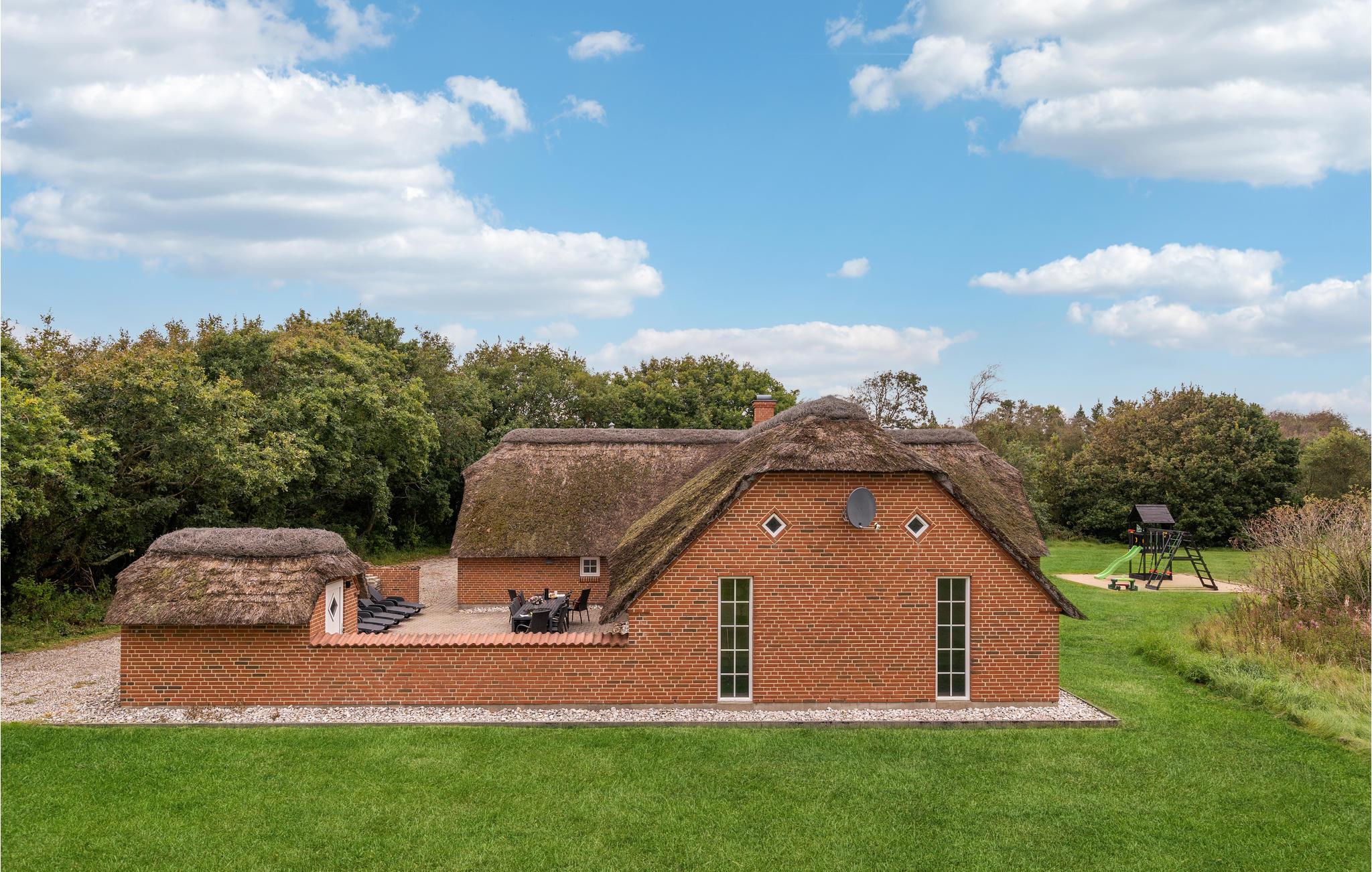 Rustikt sommerhus med stråtag, pool, sauna og stor have nær Vesterhavet i Vester Husby.