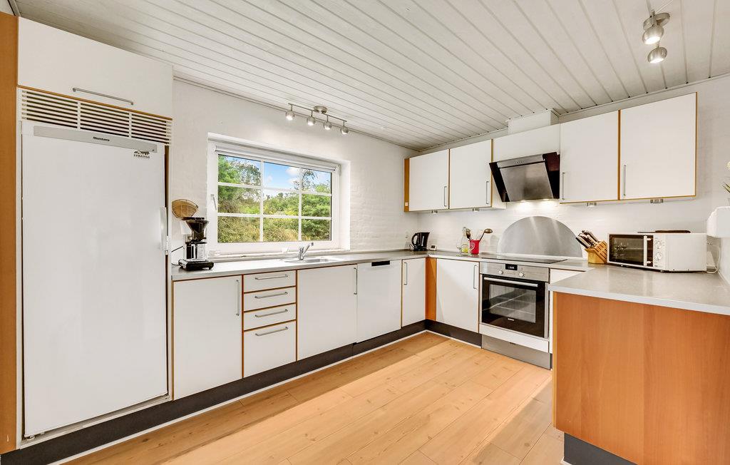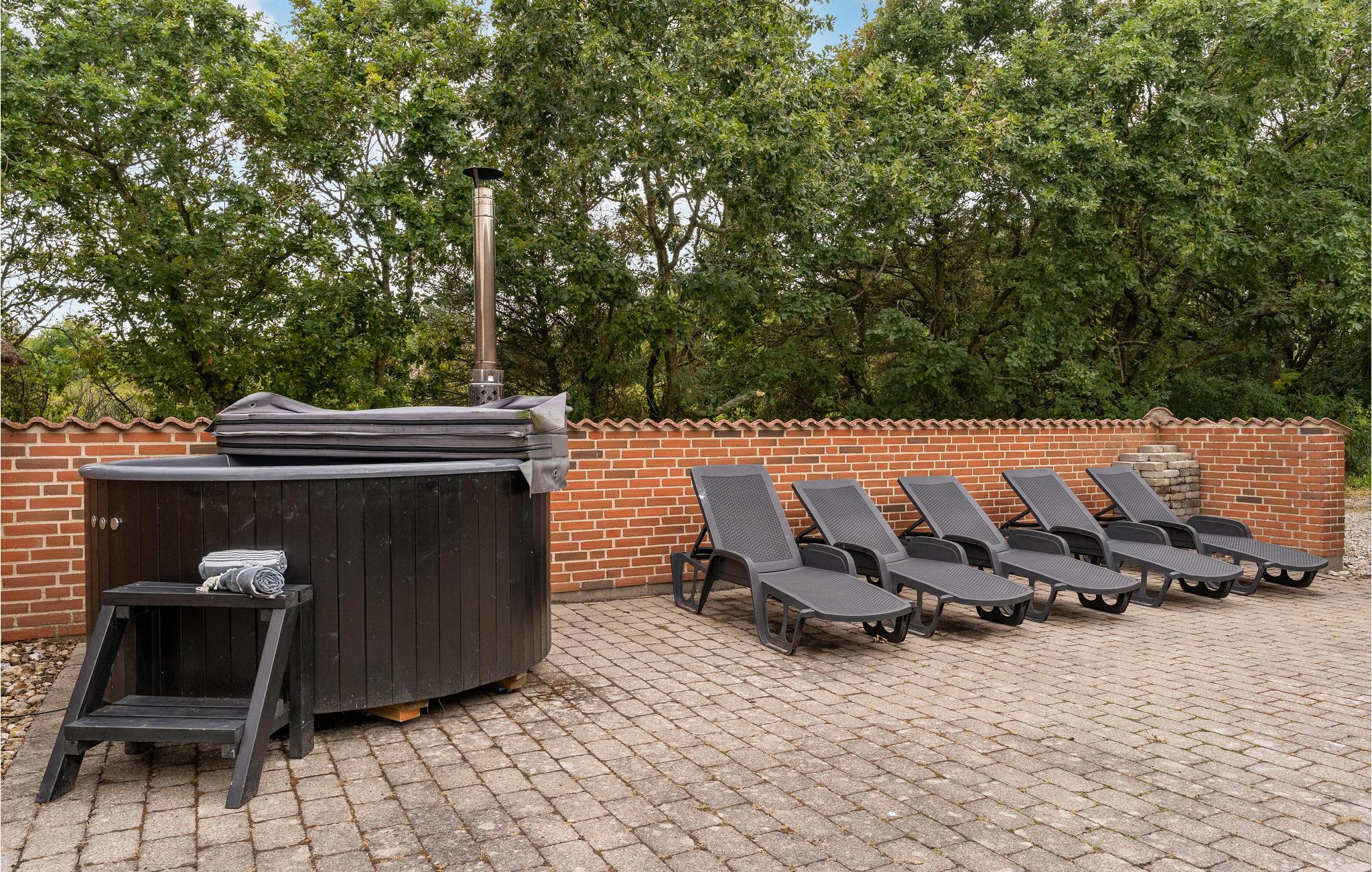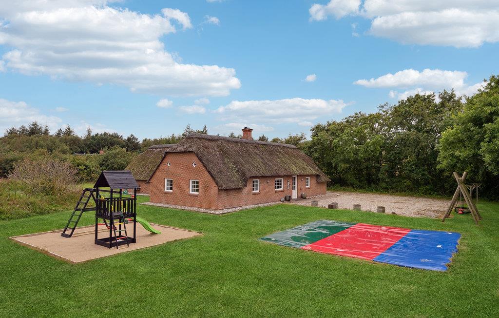 Mellem Søndervig og Thorsminde, på en stor grund i et gammelt klit- og plantageområde, ligger dette rustikke sommerhus med pool og det, for området, så karakteristiske stråtag. Huset er indrettet med ikke mindre end seks soverum, tre badeværelser, et hyggeligt køkken som går i ét med stuen, hvorfra I har direkte adgang til terrassen, som er omgivet af en læ mur og til det dejlige poolrum med rutsjebane, spabad og sauna. Området er ideelt til lange vandre-, cykel- og løbeture på de afmærkede stier, der bl.a. fører ud til Vesterhavet. Uanset hvornår I vælger at holde ferie i det vestjyske, bør I opleve Vesterhavet, som er meget fascinerende. I området ligger der bl.a. flere små lokale havne, hvor I kan nyde roen, lege på legepladsen, som varierer fra havn til havn og måske opleve de lokale komme ind med dagens fangst. I Husby ligger der en mindre hundeskov, hvor de firebenede kan boltre sig med ligesindede. Kører I mod nord, kommer I til Thorsminde, som ligger ganske unikt på en tange mellem Nissum fjord og Vesterhavet. Her kan I opleve det lokale havnemiljø, smide snøren ud og fange en fisk, og lykkes det ikke, kan I købe friske fisk på havnen. På havnen finder I også strandingsmuseet Sct. George, som har en stor samling af effekter, som dykkere har hentet op fra vragene fra bl.a. de to engelske krigsskibe, som forliste i julen 1811, hvor kun 17 overlever ud af en besætning på ca. 1.400 medlemmer.