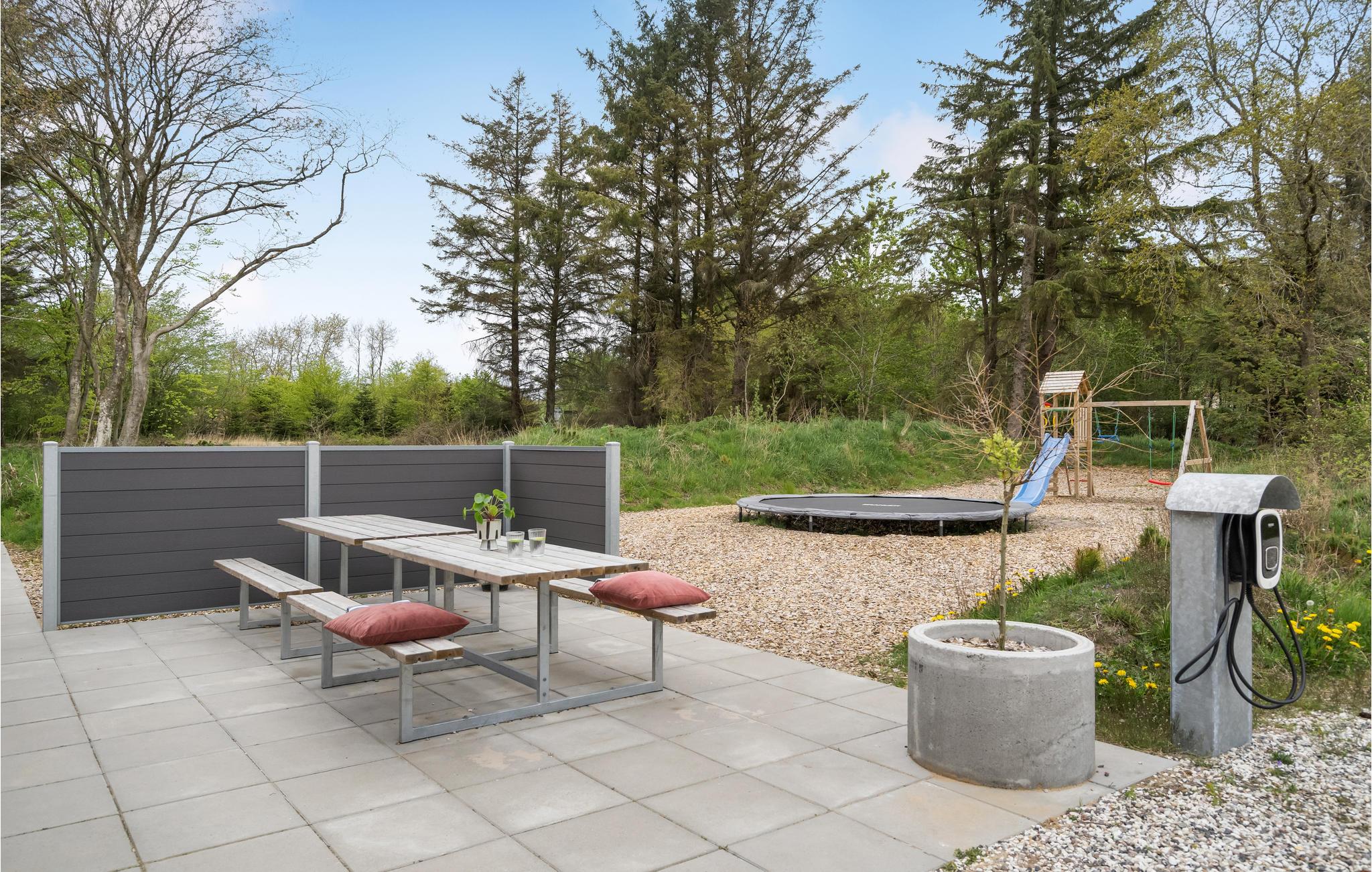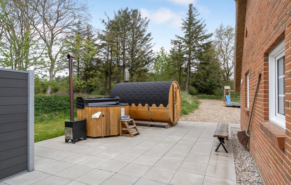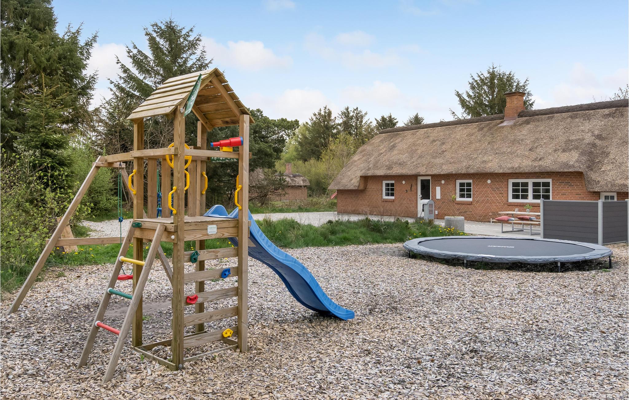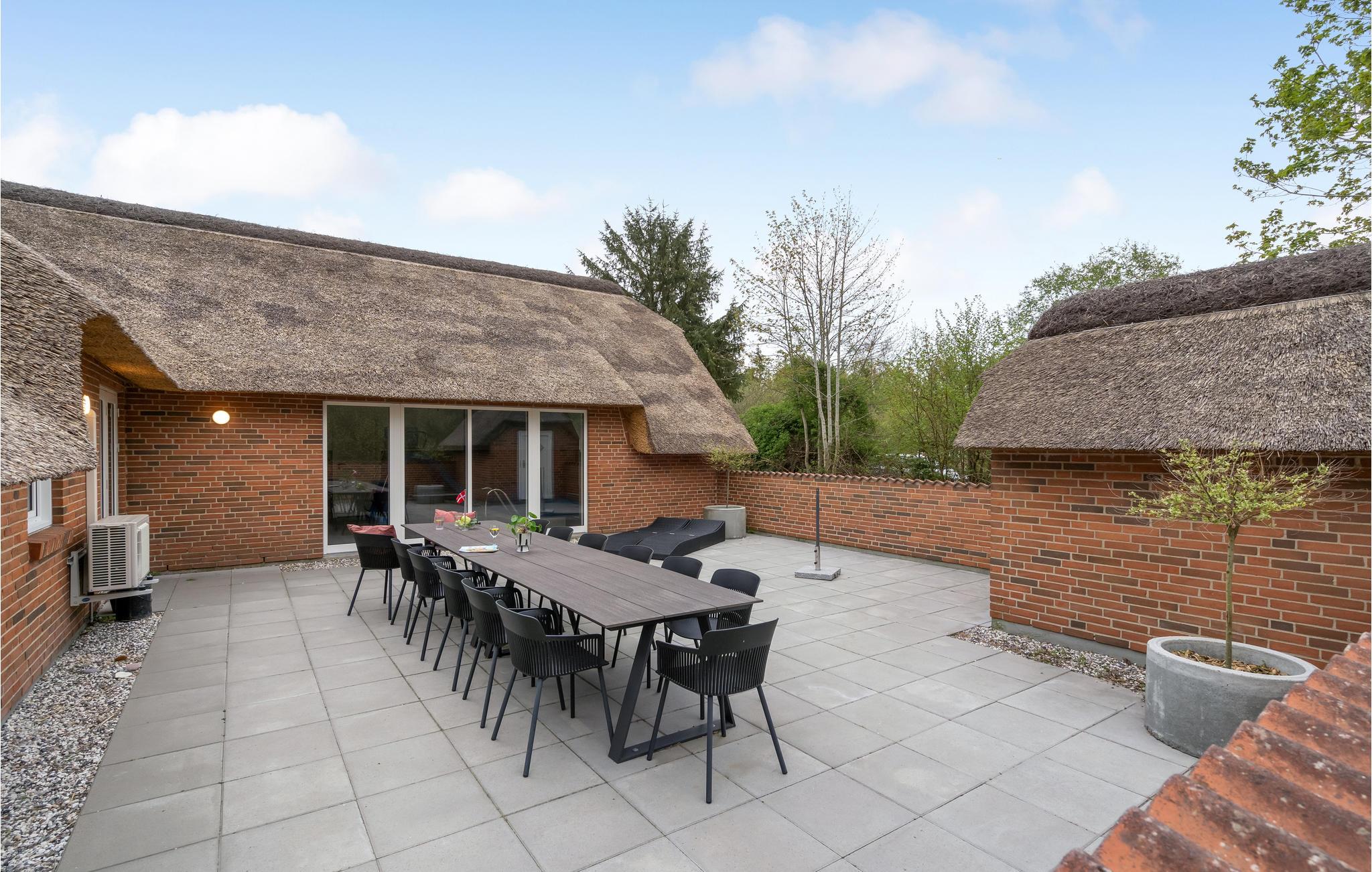 Foretrækker I luksus? Her går alle ønsker i opfyldelse! Tæt på klitlandskabet og Vesterhavets friske bølger byder dette rummelige og eksklusive feriehus med indendørs swimmingpool og dertil hørende rutsjebane, spabad, sauna, vildmarksbad, tøndesauna og legeplads jer velkommen. Her er plads til den helt store familiesammenkomst eller flere vennefamilier. Den stråtækte bolig er meget veludstyret og moderne indrettet. Nyd en skøn tid med fælles madlavning, spillehygge, vandplask, selvforkælelse og lækre måltider for hele gruppen ved det nærmest kilometerlange bord i henholdsvis stuen og på terrassen. Børnene kan også hygge sig i den lille hjemmebiograf, når de ikke får krøllede fingre i swimmingpoolen! Der er også en whirlpool og en sauna indenfor til de køligere dage. Udenfor kan I svede i tøndesaunaen eller sidde i vildmarksbadet om aftenen med et glas rosé og nyde solnedgangen. Mens de udvalgte kokke laver mad, kan børnene tonse rundt i legetårnet og springe til svimlende højder på trampolinen. Nyd dejlige måltider på terrassen med vidunderlig sommerstemning.