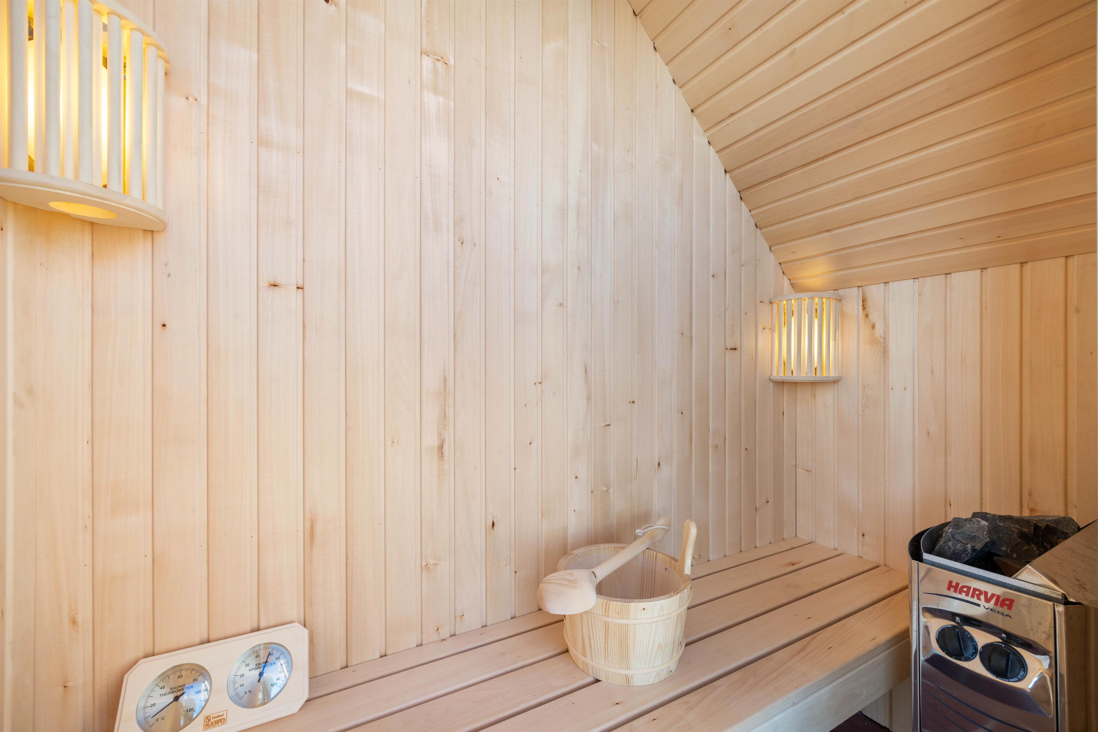 Når I efter en lang spadseretur trænger til at få varmen igen, har I mulighed for at benytte feriehusets sauna, hvor I rigtig kan nyde varmen og slappe af med hinanden. I har endda adgang til saunaen udefra, så I er fri for at slæbe sand og lignende ind i sommerhuset. Herfra kan I ovenikøbet nyde den dejlige udsigt imens I får et glas koldt at drikke.