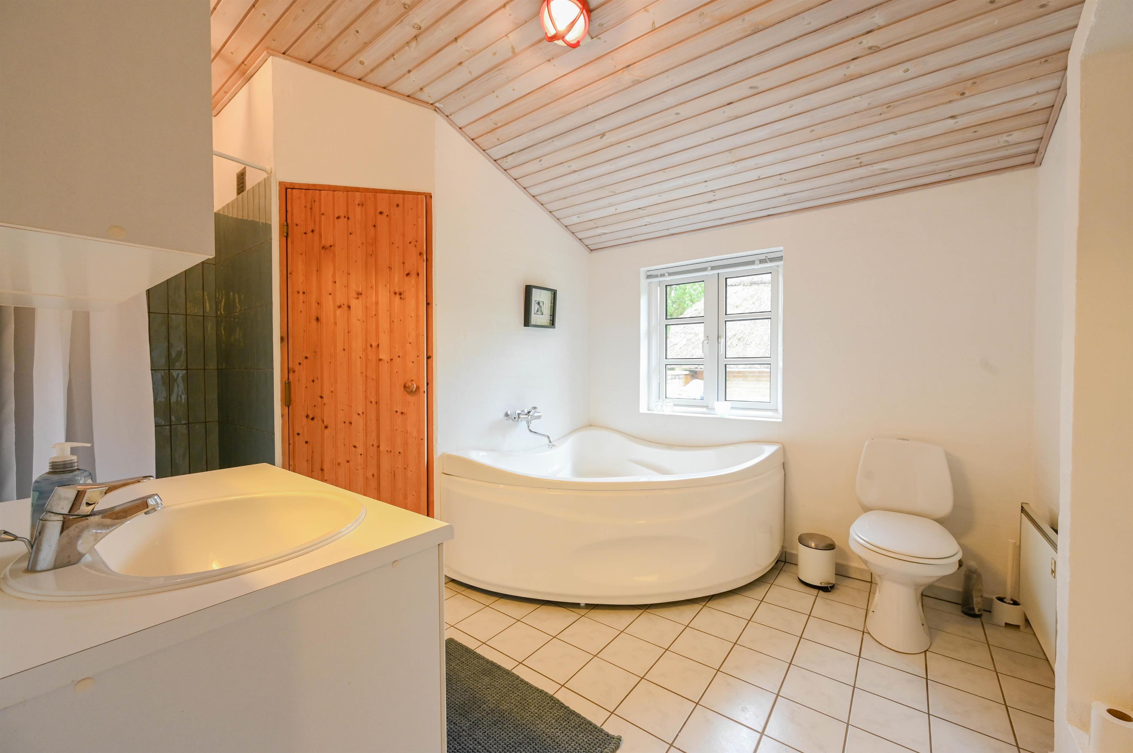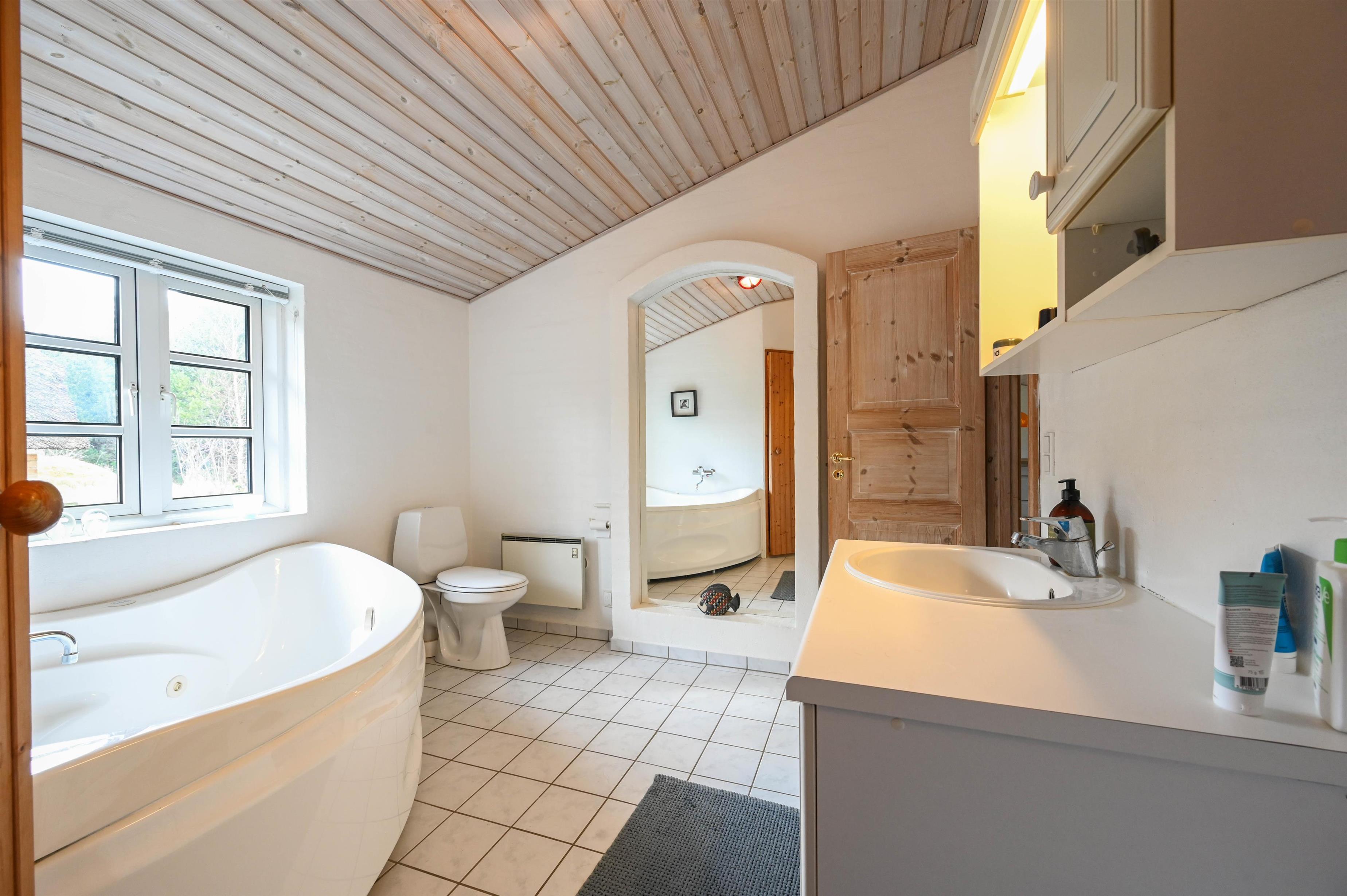 I husets vestlige ende er der endnu et soveværelse og et badeværelse med bruser – en praktisk opdeling, der giver både komfort og privatliv.