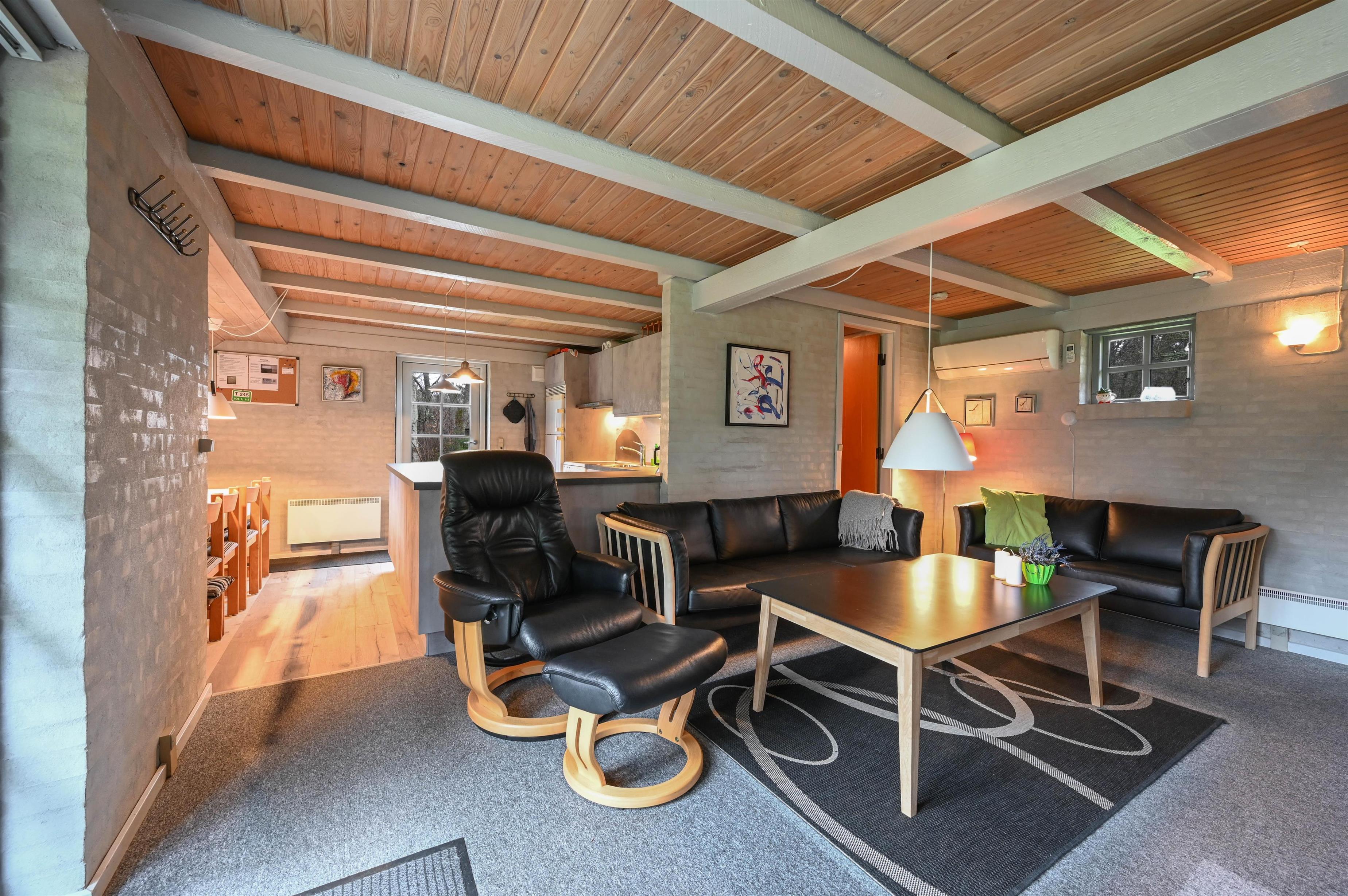Den hyggelige stue med brændeovn bliver hurtigt familiens samlingspunkt, hvor I kan slappe af efter en dag i naturen, mens ilden knitrer i baggrunden.