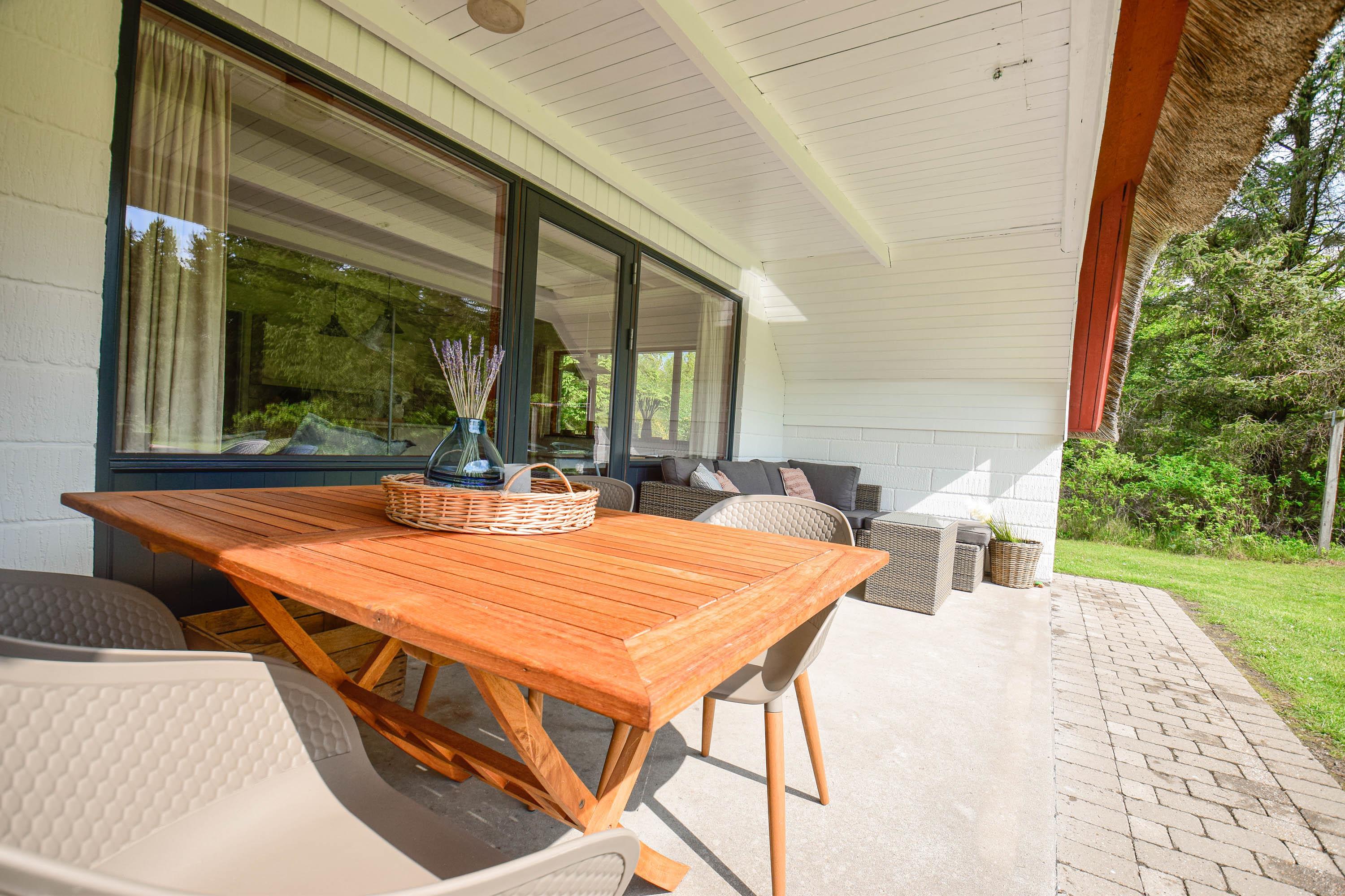 Med flere terrasser omkring huset er der altid mulighed for at finde sol eller læ: