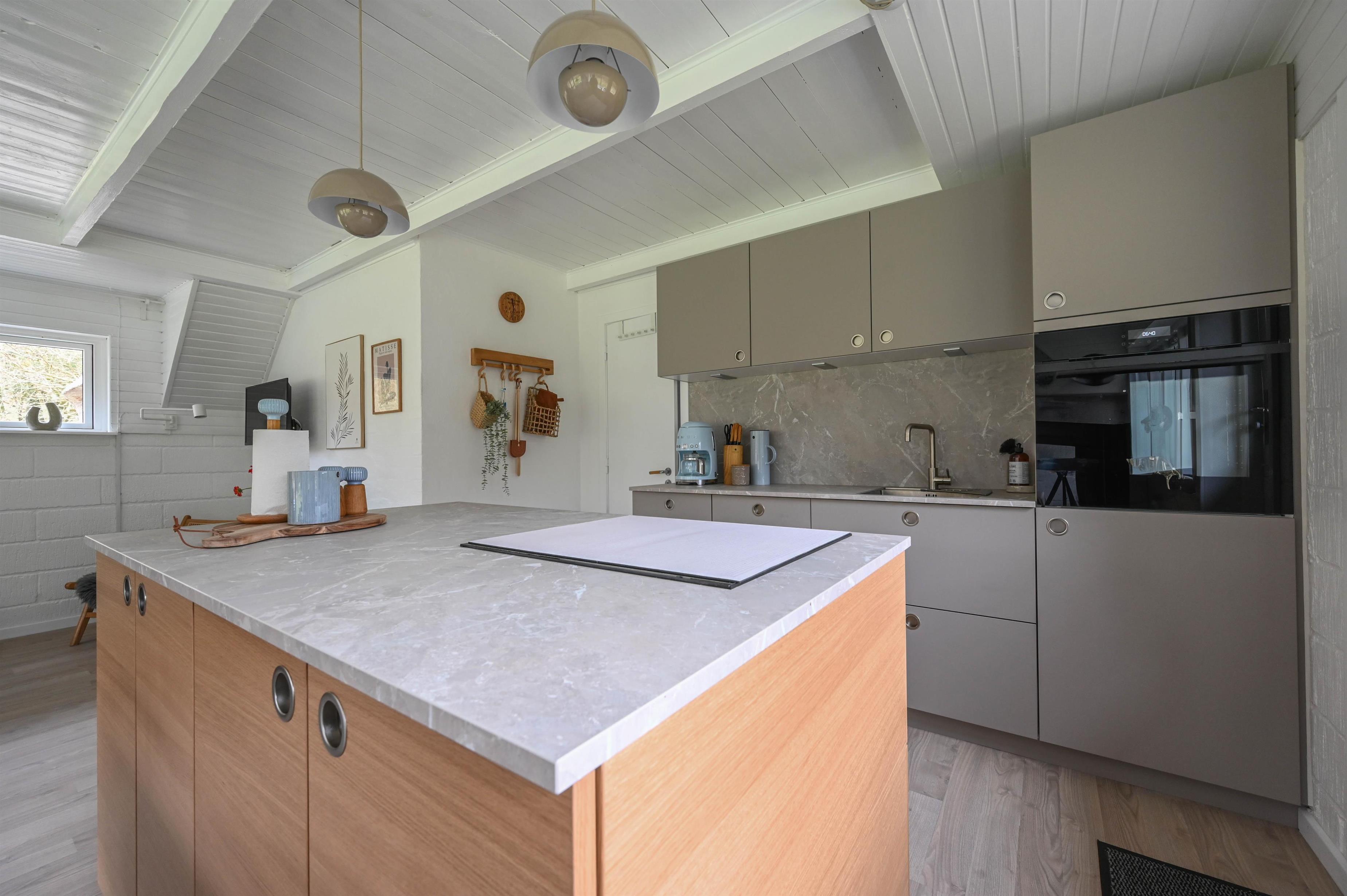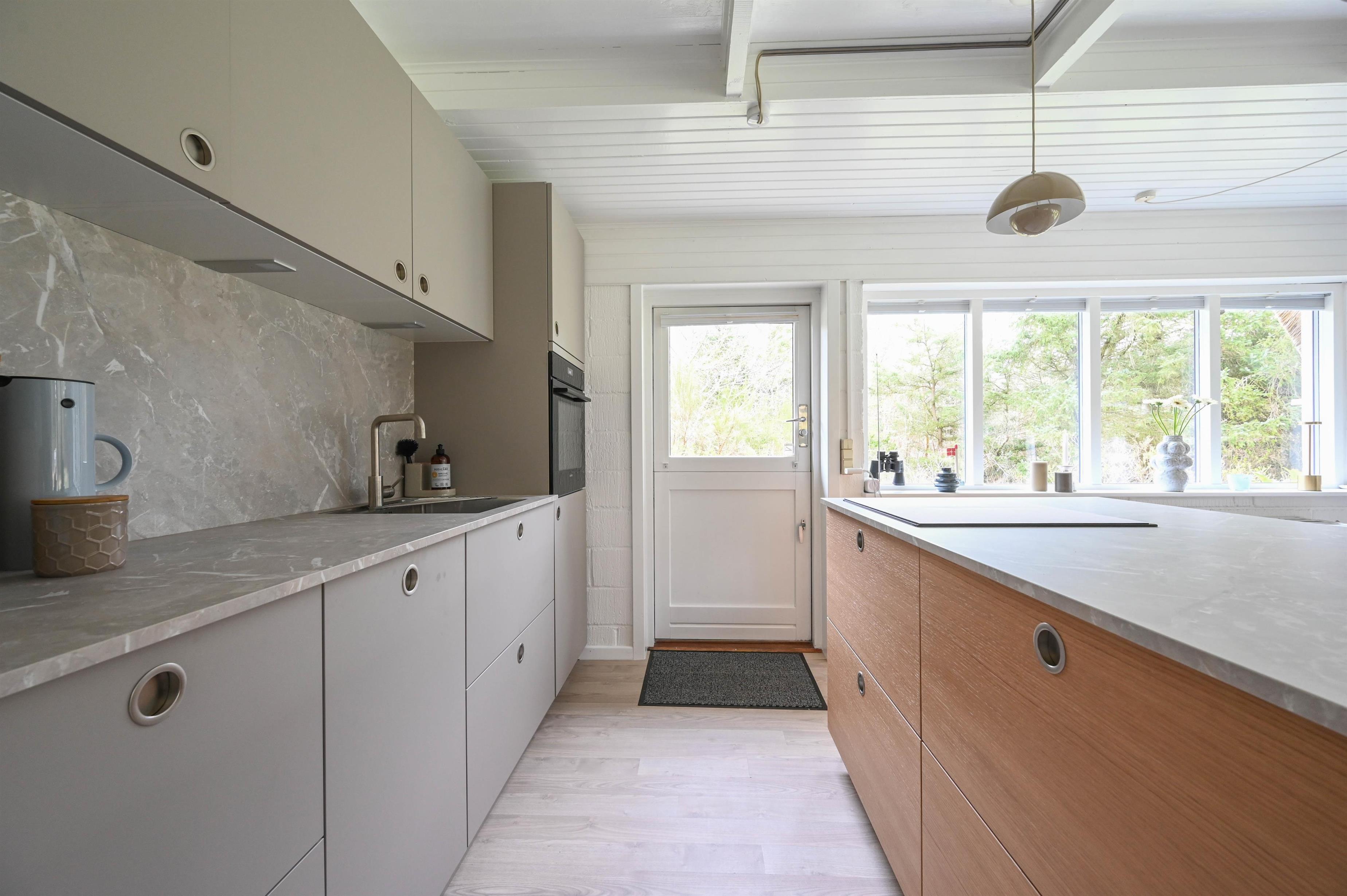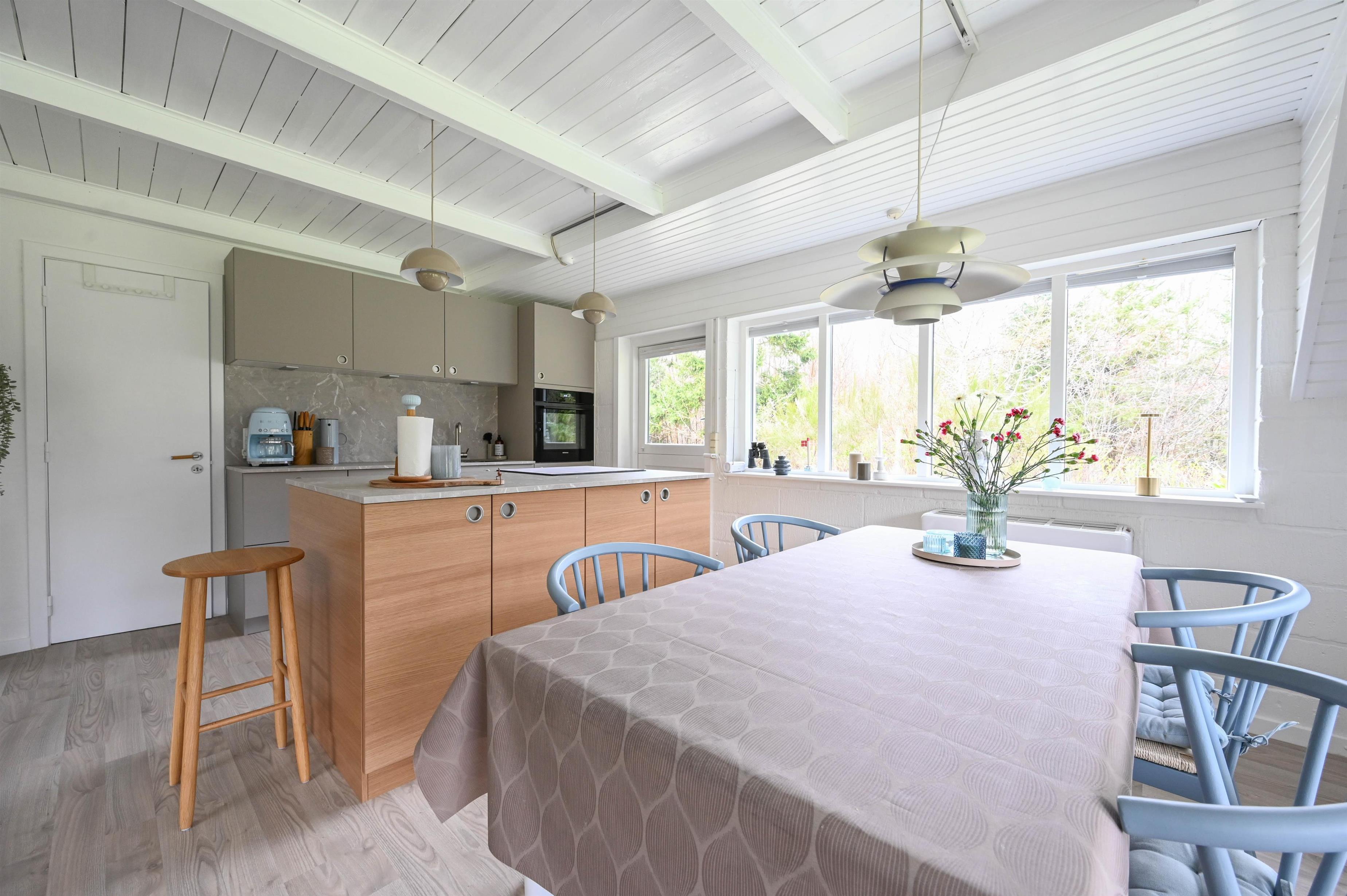 Her er der bl.a. lagt nye gulve i køkken og værelser, og det nye, flotte køkken med opvaskemaskine gør ferien både nemmere og mere komfortabel.