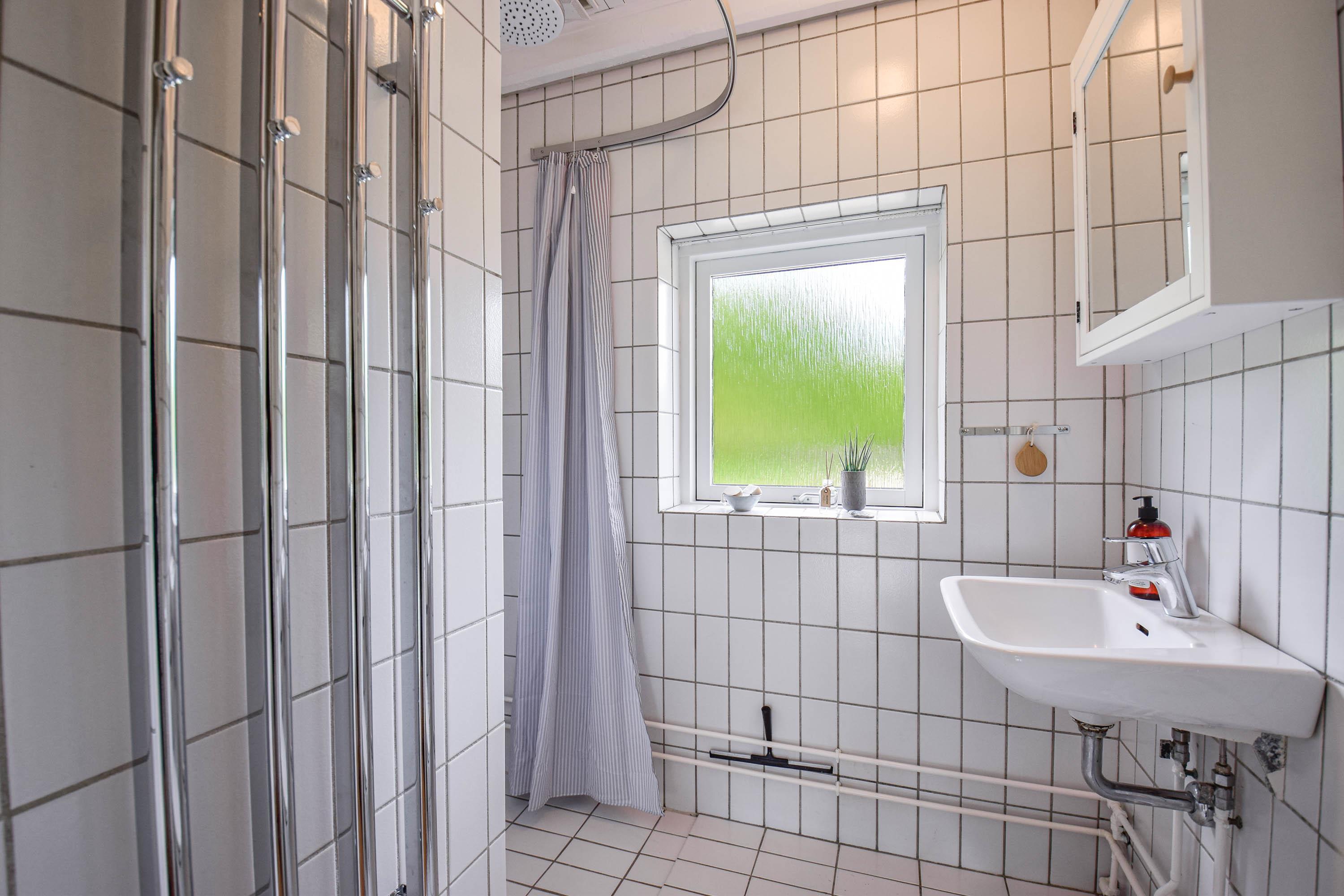 Badeværelse med bruser og gulvvarme