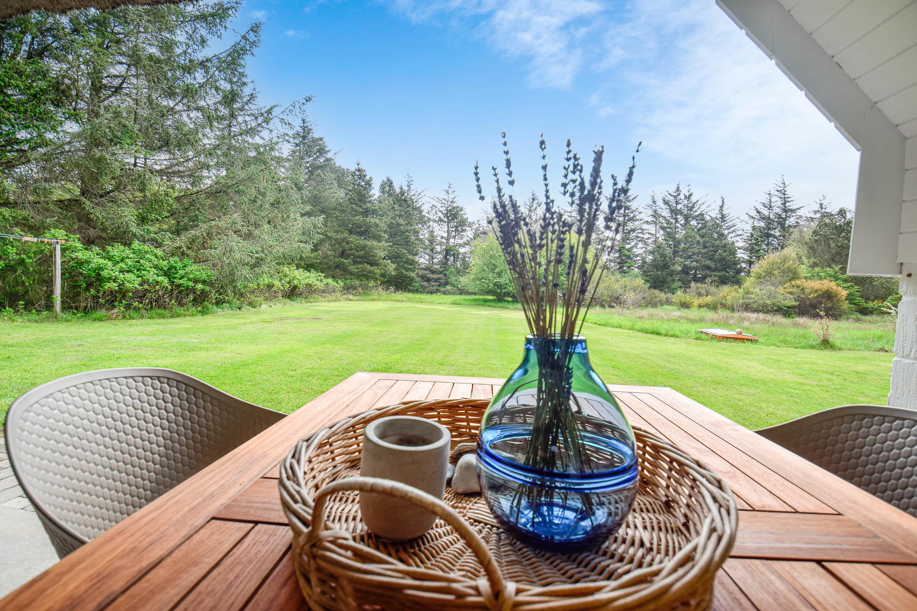 Kun 1.200 meter fra Vesterhavet finder du et fredeligt fristed, hvor ferien kan nydes i ro og afslappende omgivelser – med skov, klitter og fuglefløjt lige uden for døren.