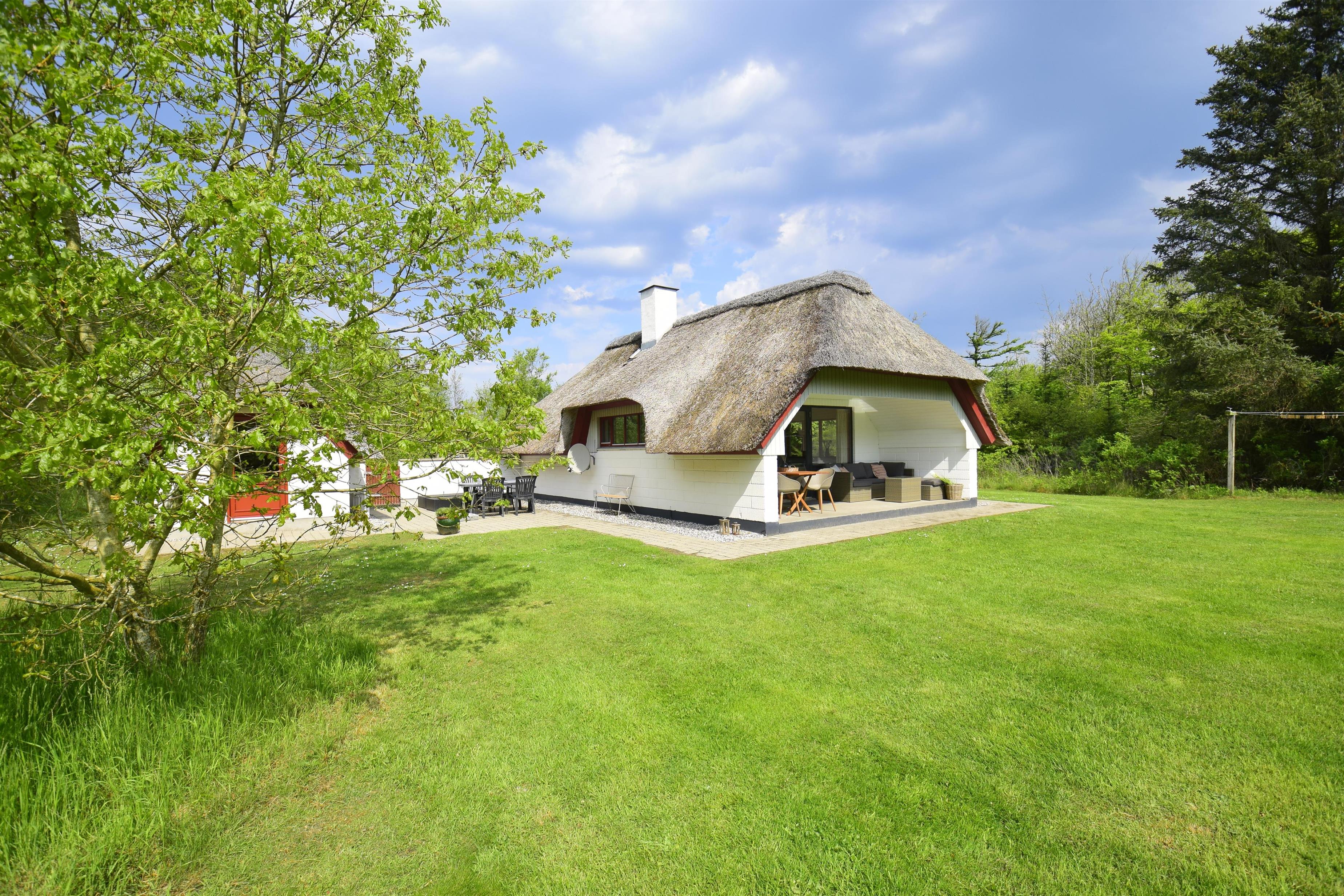 På en lukket og ugeneret grund, omgivet af natur og læ, ligger dette dejlige og populære feriehus, som i foråret 2025 har gennemgået en delvis modernisering.