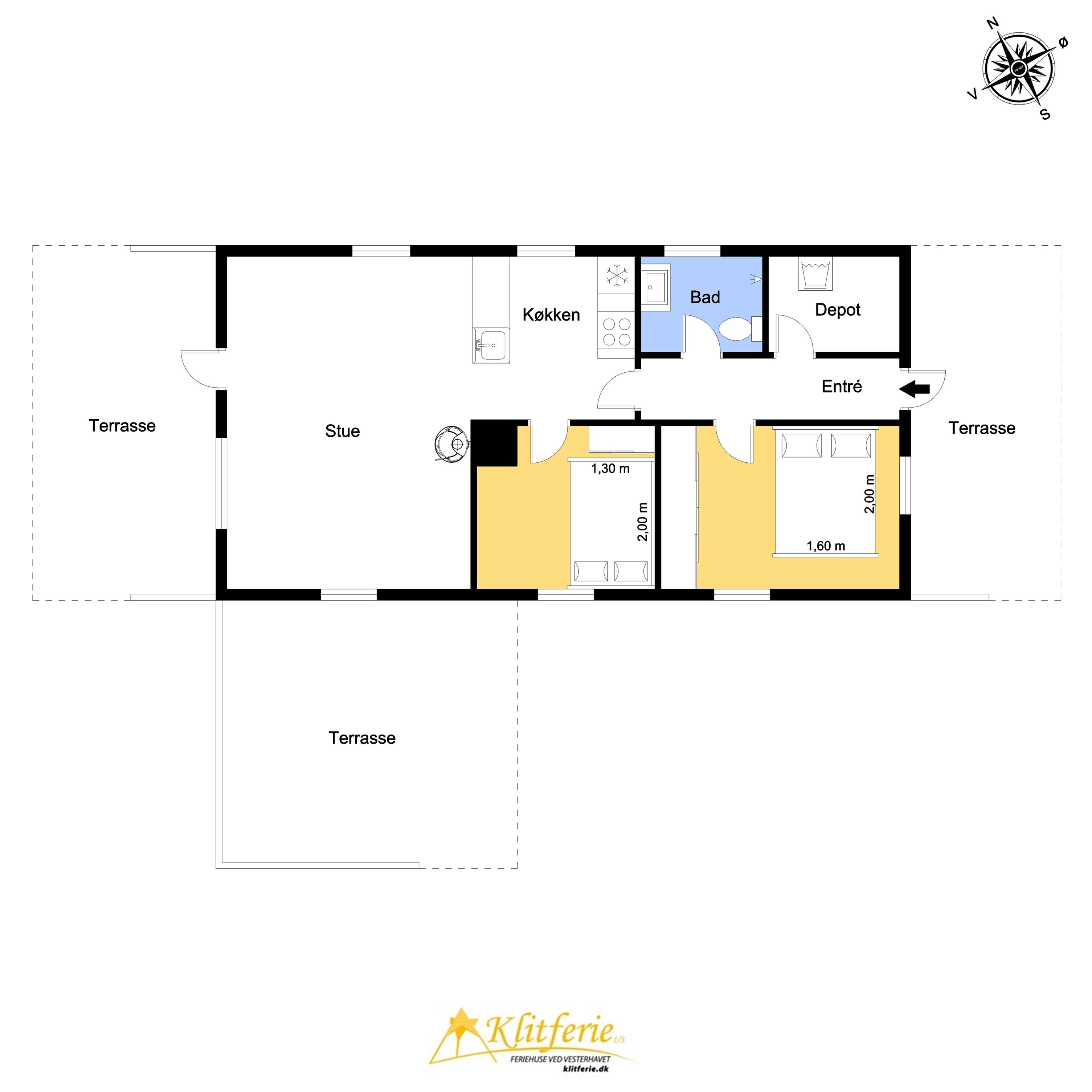Her kan du nyde ferien i fredelige omgivelser, med god plads både inde og ude – og altid finde et solrigt eller læfyldt hjørne på en af husets terrasser.