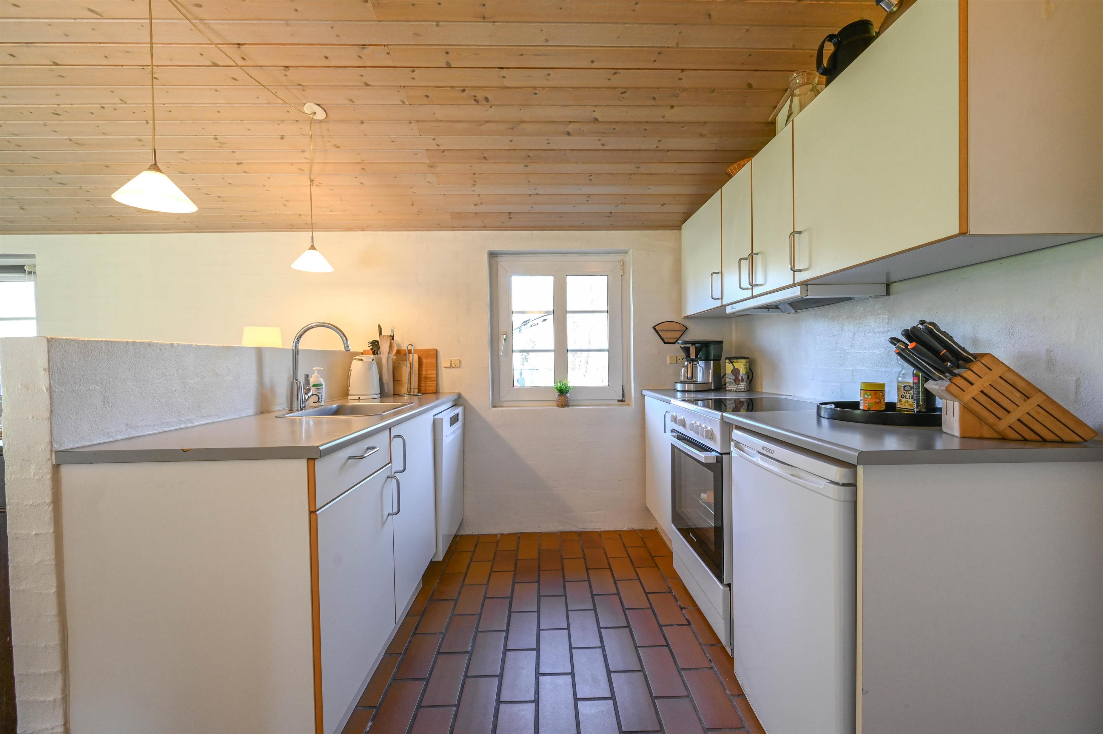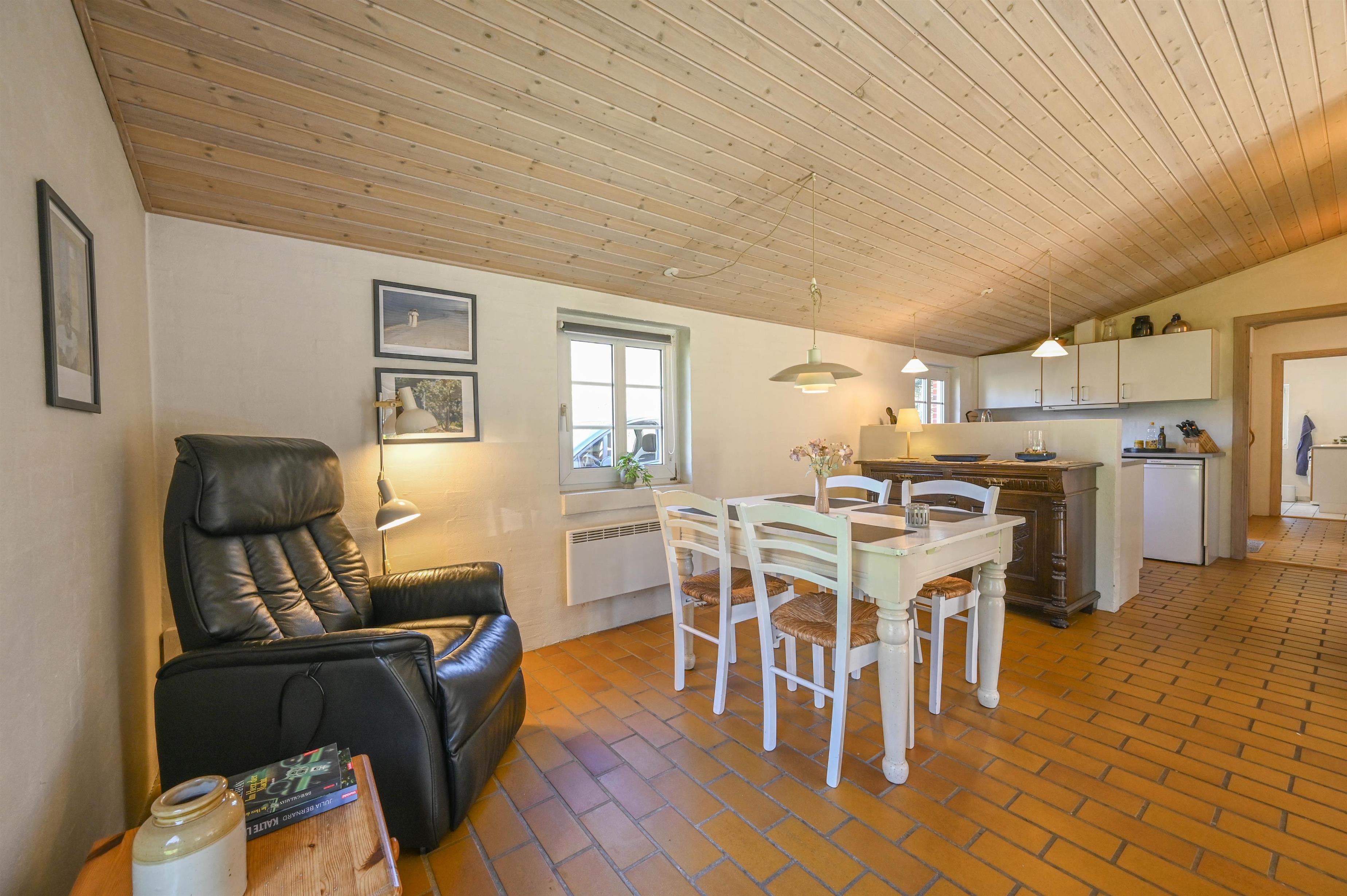 Det åbne køkken/alrum skaber en behagelig og social atmosfære, hvor madlavning, samtale og afslapning smelter naturligt sammen.