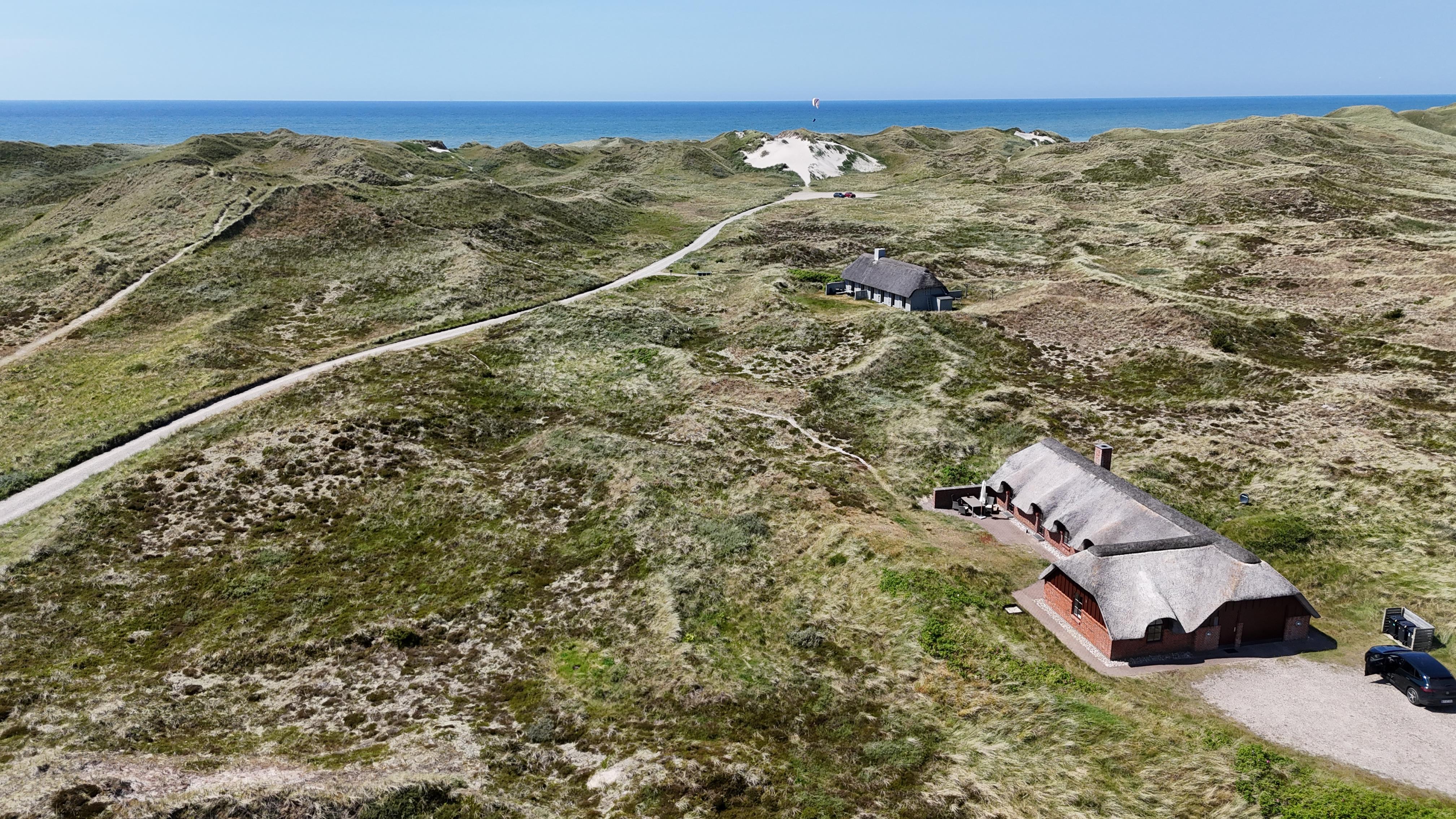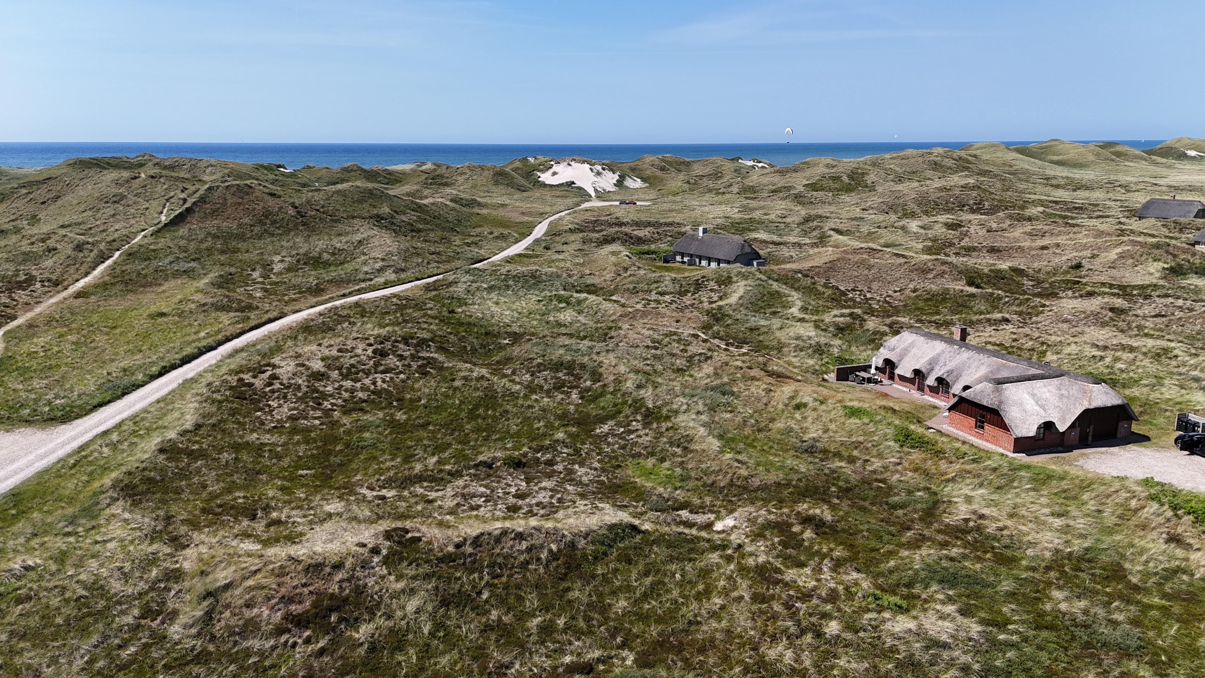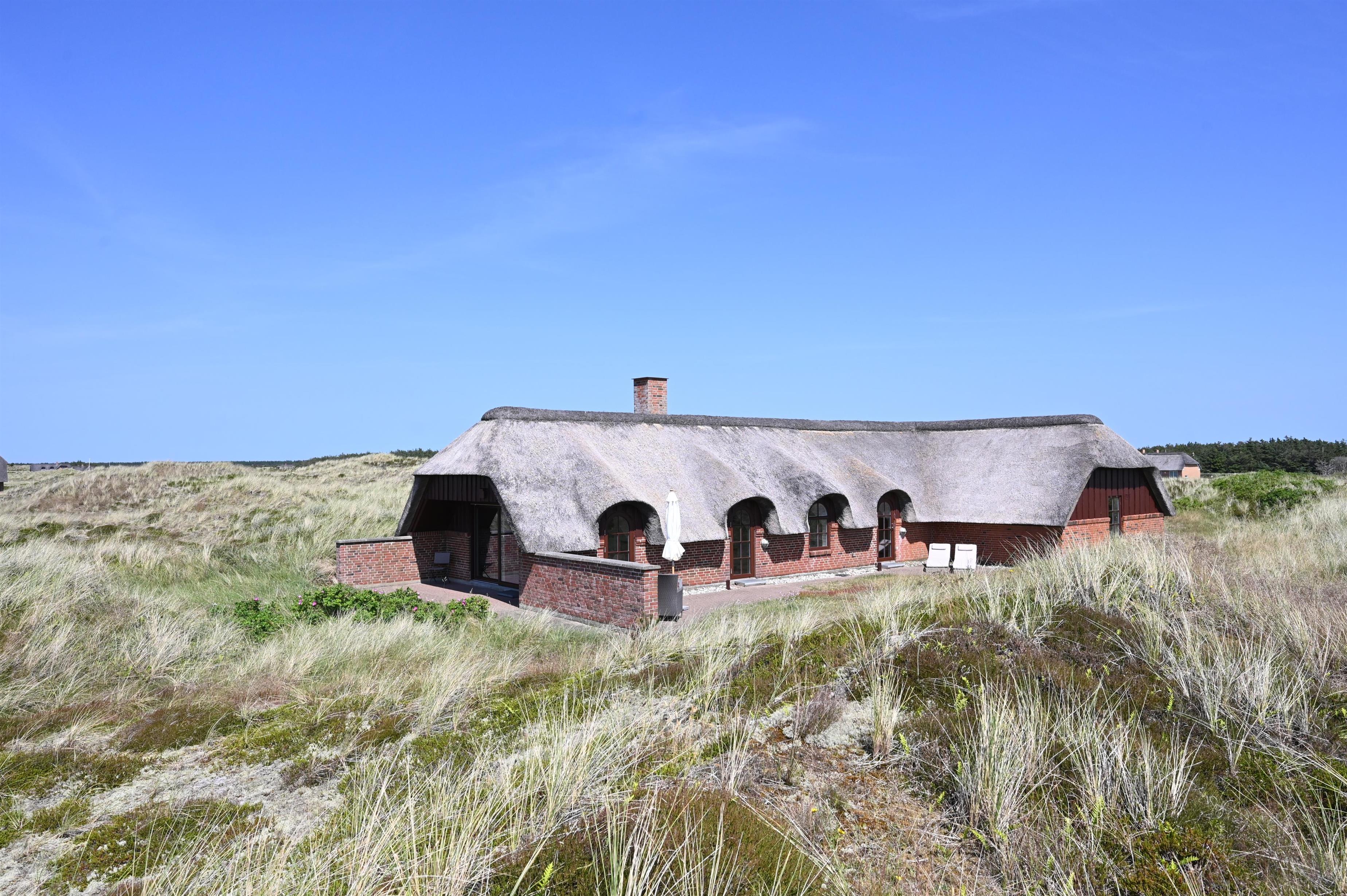 Kun 400 meter fra Vesterhavet og tæt på Husby Klitplantage ligger dette smukke og velholdte feriehus på en stor 8.000 m² kuperet klitgrund.