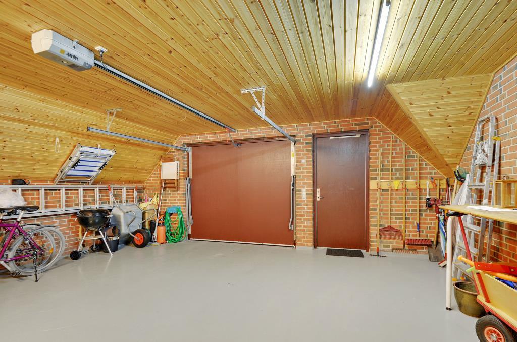 Huset har desuden en 37 m² integreret garage/multirum med god plads til cykler, brænde og opbevaring – og der er direkte indgang herfra til huset.