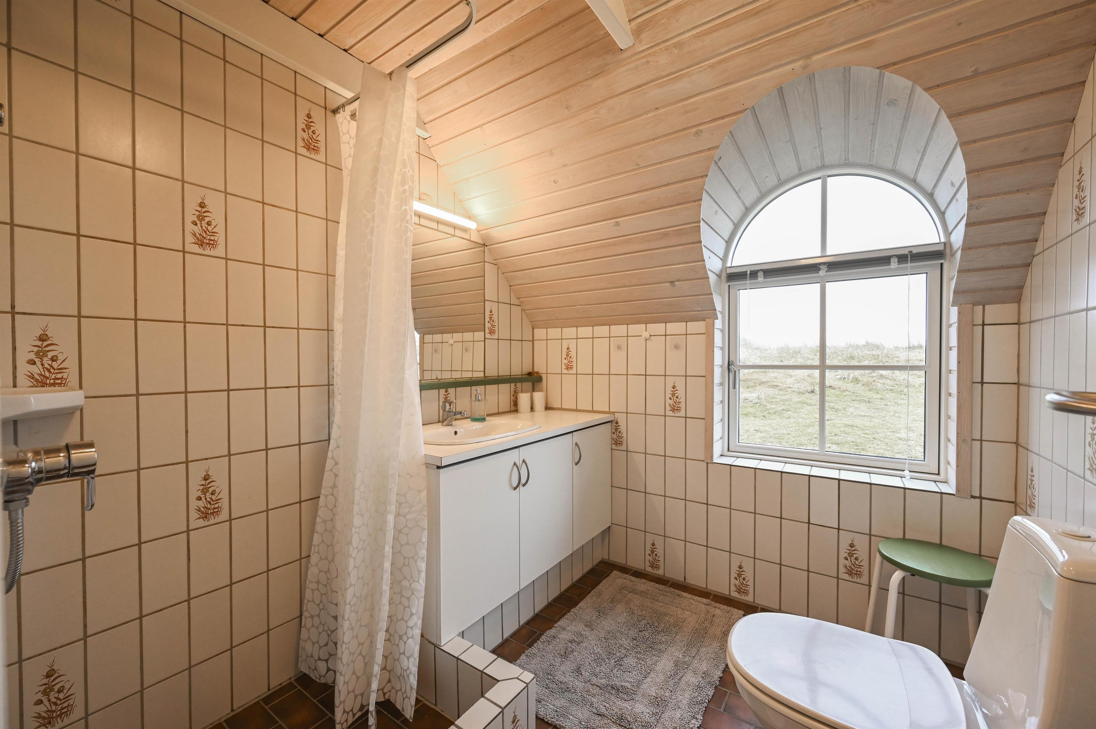 Badeværelse med bruser og gulvvarme