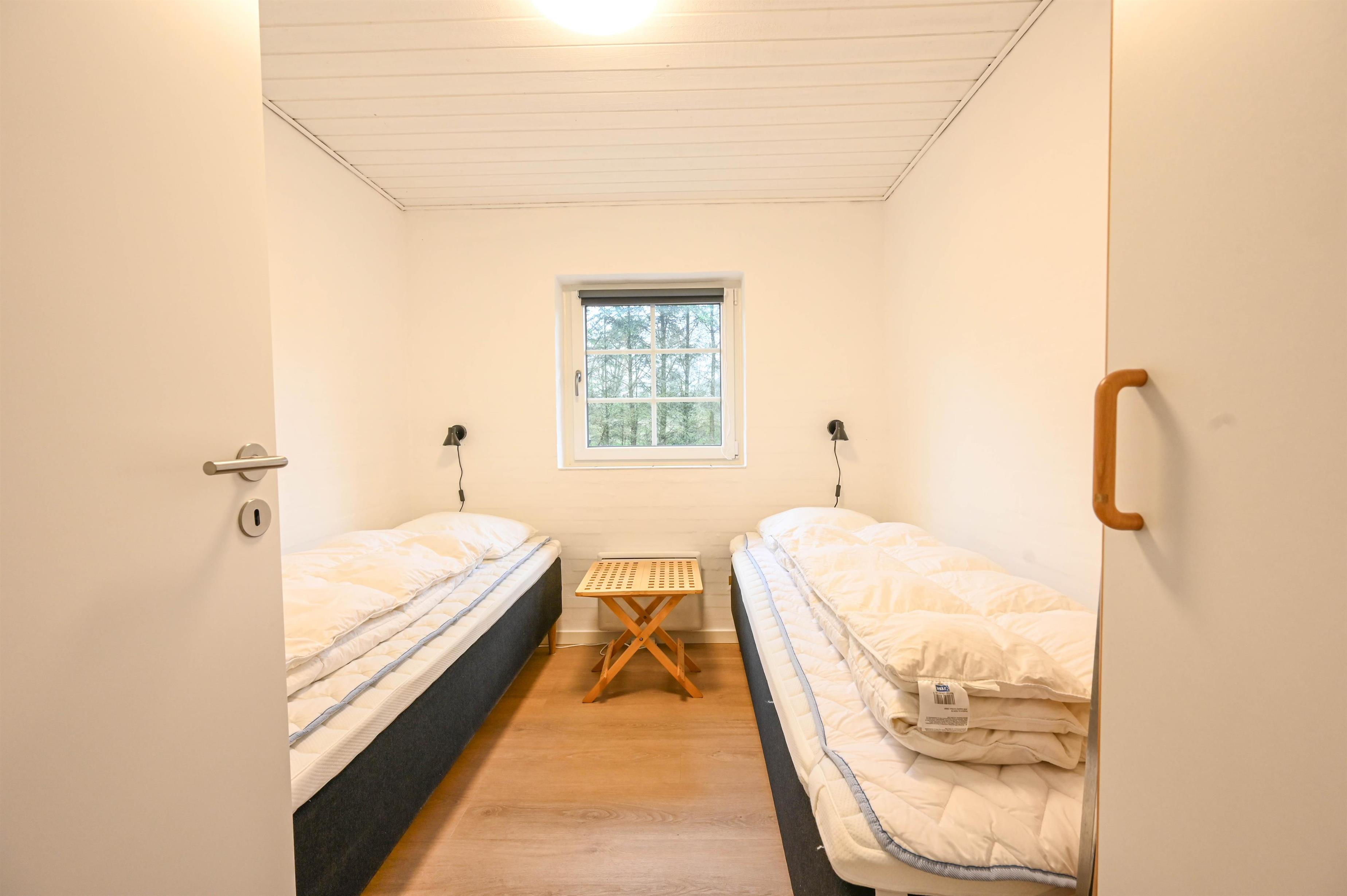 Hver afdeling har sit eget badeværelse og tre soveværelser: to med dobbeltsenge og ét med to enkeltsenge.