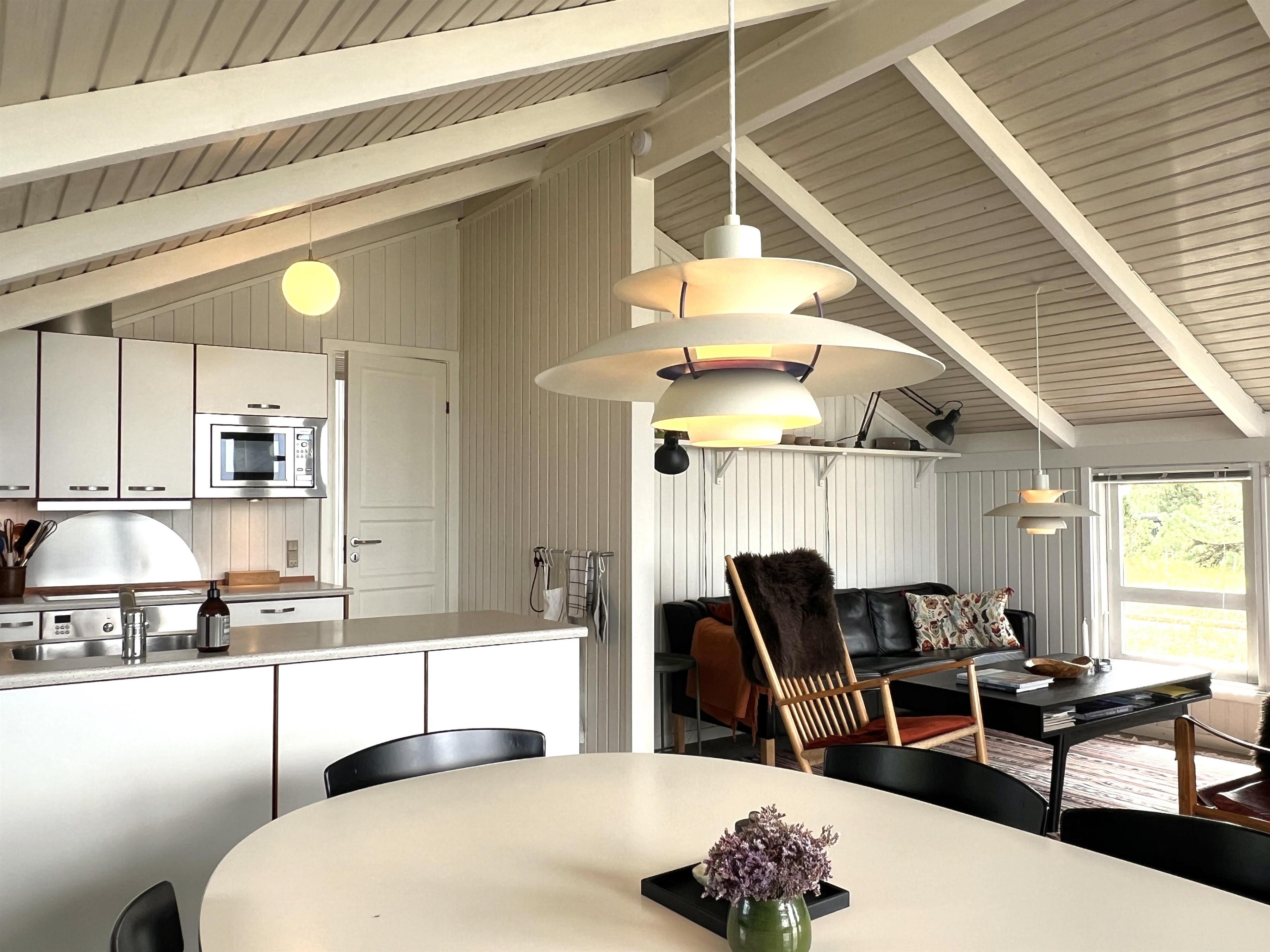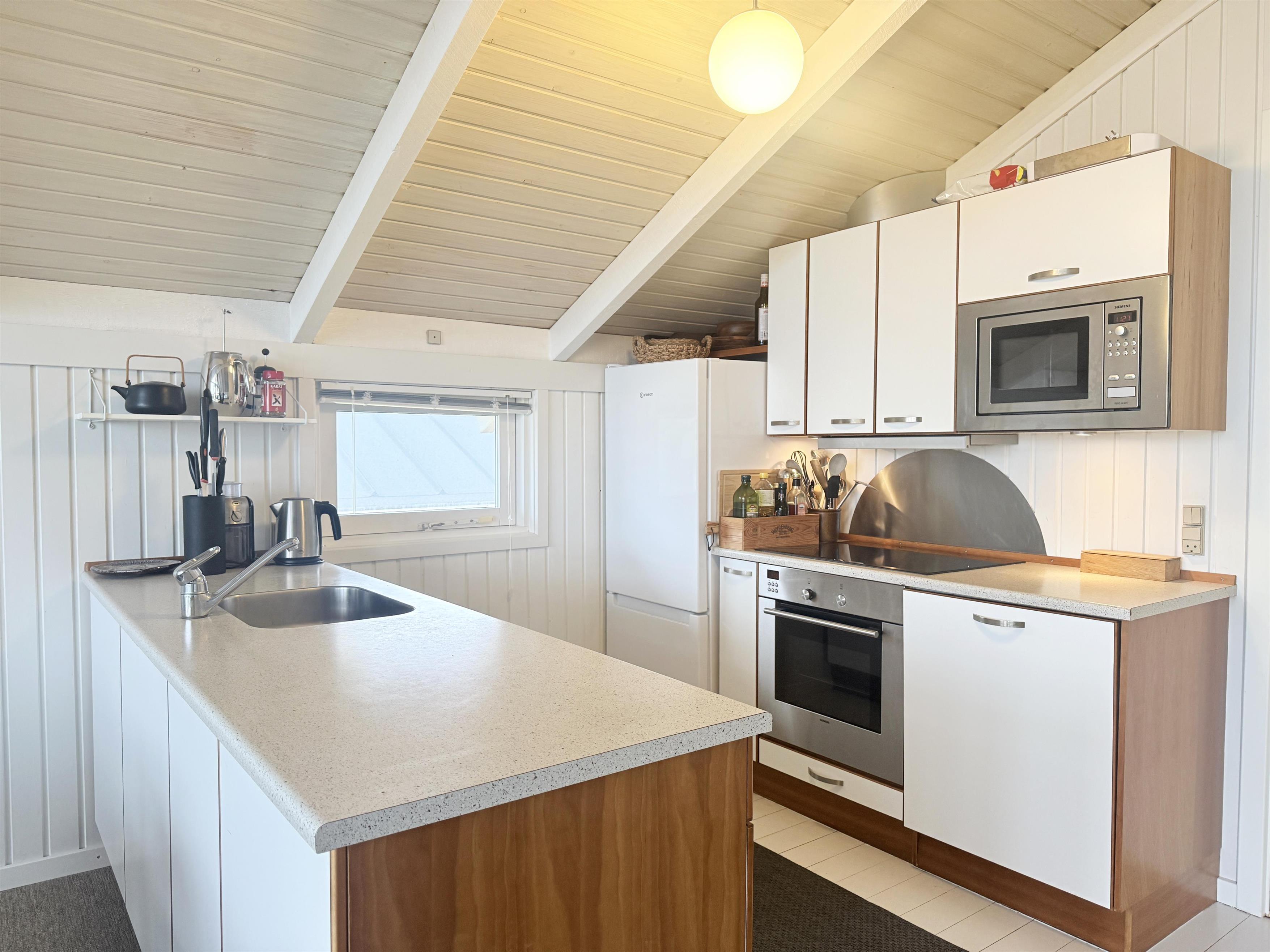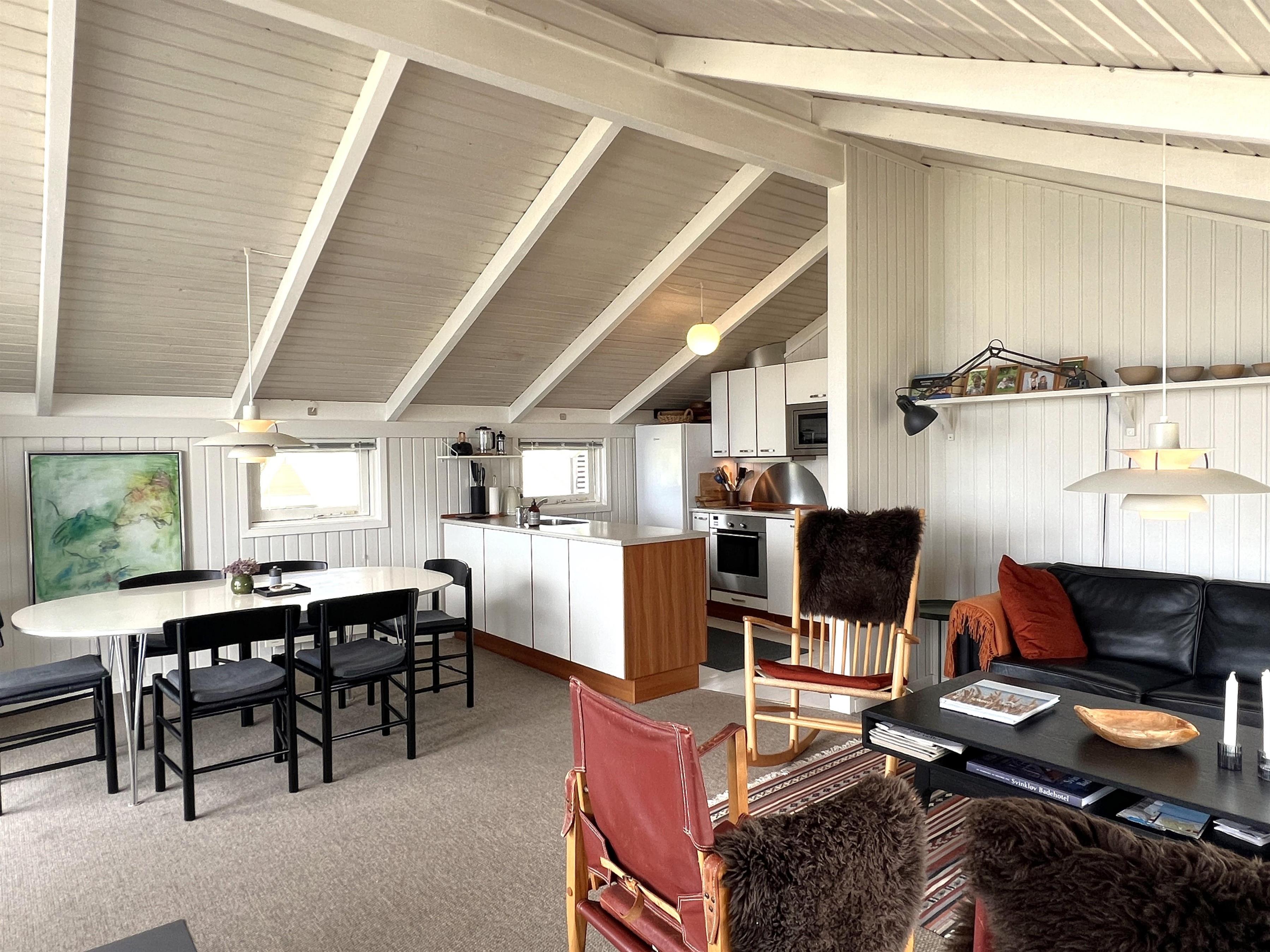 Selve huset er charmerende indrettet, og man fornemmer straks den særlige strandhusatmosfære. Allerede fra husets indgangsdør er der frit syn til vandet. Huset har et fint køkken alrum med rummelig spiseplads og sofaafdeling med brændeovn og TV. Der er ialt fire soverum, hvoraf det ene er forsynet med en stor enkeltseng placeret i det nyere, hyggelige anneks. Der er to dobbeltsenge og en køjeseng i hovedhuset. Tiltalende badeværelse med brus og toilet. Der er flere praktisk anlagte terrasser, der gør det muligt at nyde solen og udsigten hele dagen - solnedgangen er simpelthen magisk fra træterrassen mod vest og et fantastisk sted at afslutte en skøn, oplevelsesrig feriedag på Læsø. Afstand til havnen med restauranter, fiskehandel og gode indkøbsmuligheder er kun 300 meter. Dette hus skaber rammerne for en ferie i særklasse.