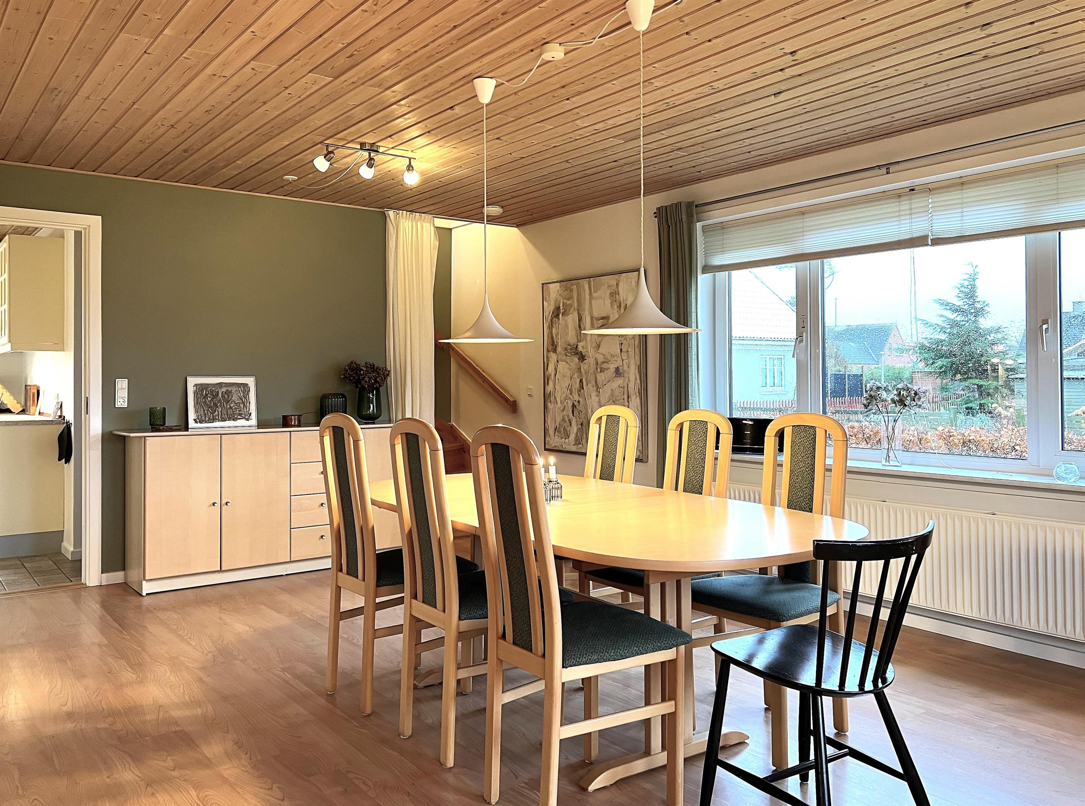 Stort, charmerende feriehus i hjertet af Vesterø Havn med udsigt til Kattegat og blot 100 meter til øens nok bedste badestrand og det hyggelige havnemiljø. Huset er med sine mange kvadratmeter og rummelige have oplagt til den store eller flere familier. Selve huset har to etager. Underetagen består af en stor stue med sofaafdeling og spisebord, samt et stort køkken med praktisk spiseplads. Fint soveværelse, samt et badeværelse med brus. Stort bryggers med vaskemaskine og tørretumbler. 1. salen har to soveværelser, et med dobbeltseng, og et med to enkeltsenge, samt et ekstra badeværelse med brus. Dejlig rummelig stue, hvorfra der er havkig til Kattegat. Stor flot balkon, hvor man virkelig kan nyde aftensolen, og man har også her det lille skønne havkig. I stuen på 1.salen, findes en ekstra dobbeltseng, samt hems med to madrasser. Huset er flot og moderne indrettet, men med respekt for den lidt ældre hyggelige charme. De store vinduer sikrer et skønt lysindfald på begge etager. Dejlig stor afskærmet terrasse med gode havemøbler og grill. Et rigtig fint, rummeligt feriehus med gåafstand til restauranter, fiskehandler, indkøb og badestrand.