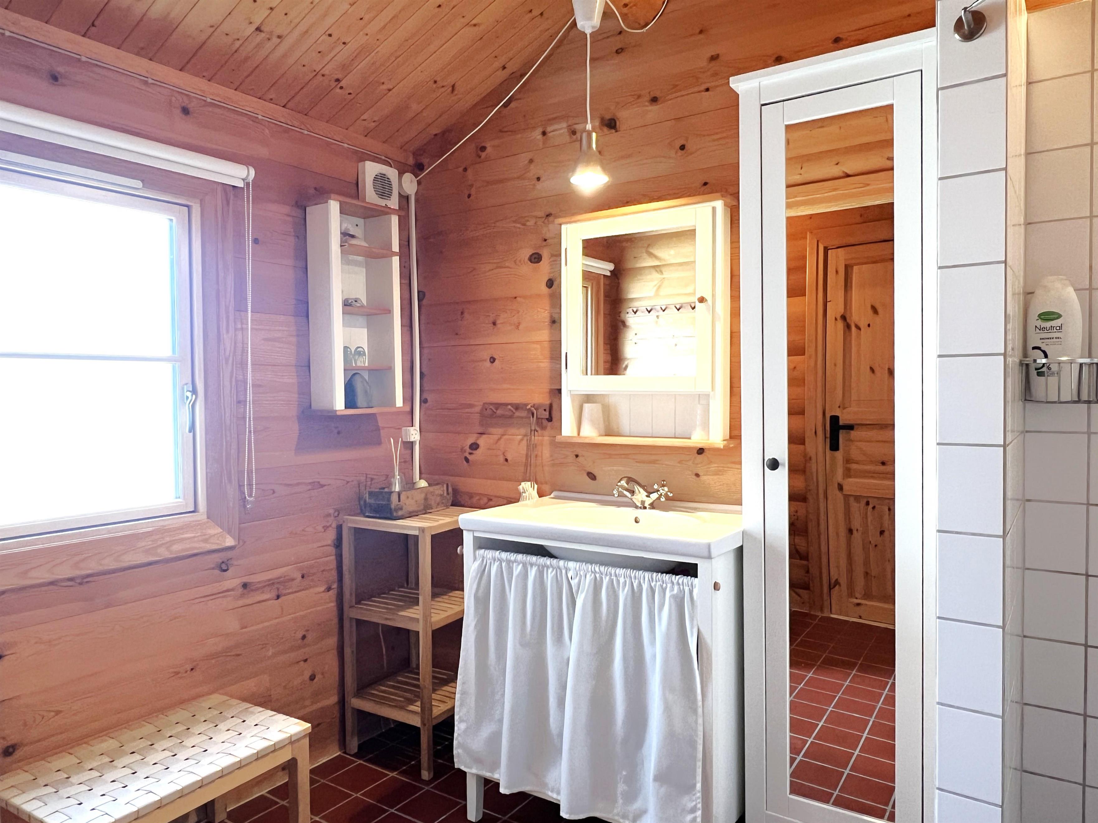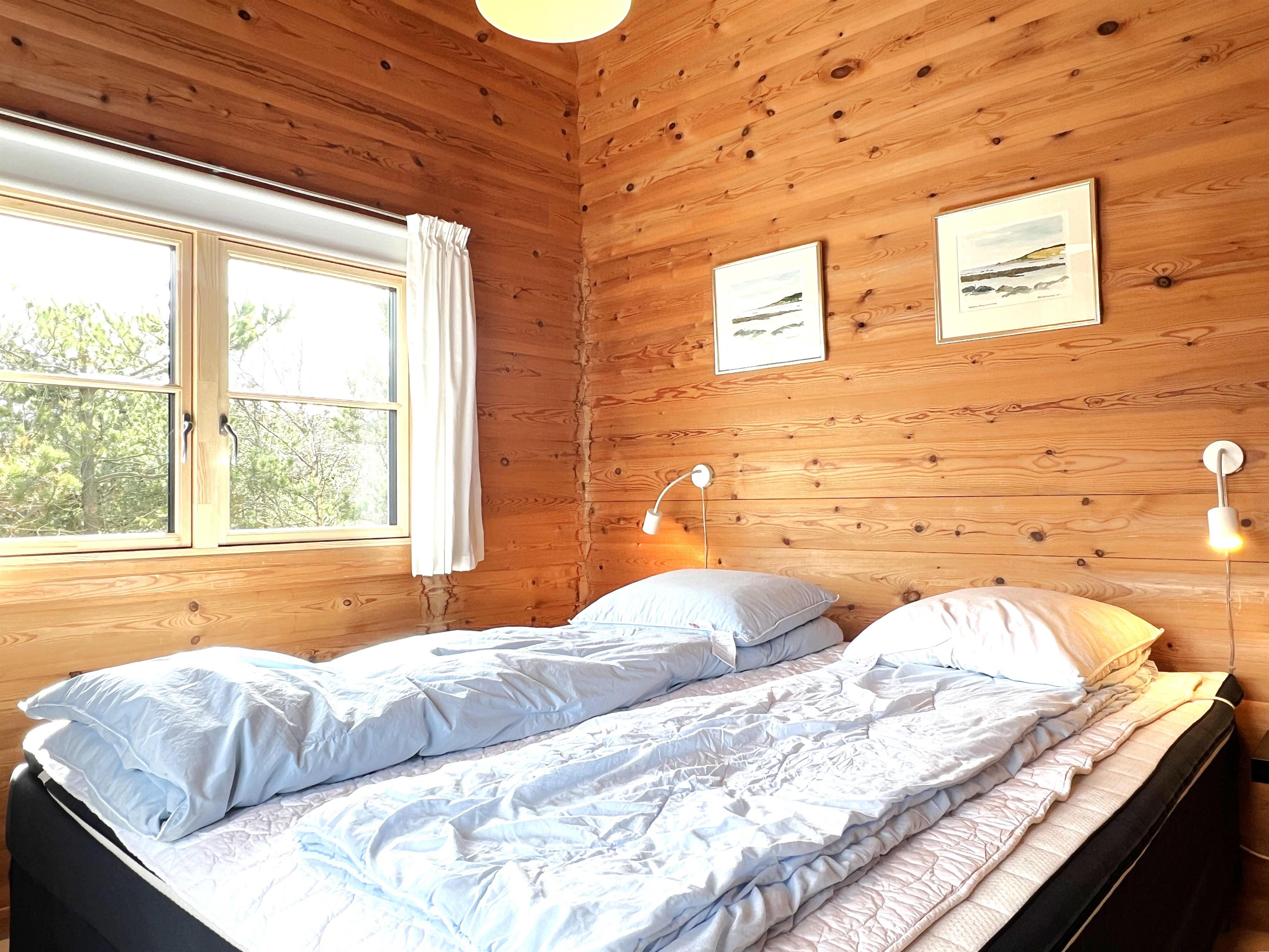 Fantastisk beliggenhed, som næppe findes bedre. Huset er hyggeligt og smagfuldt indrettet og velegnet til den perfekte familieferie. Der er et fint køkken/alrum åbent til hyggelig stue med brændeovn og TV, hvorfra havudsigten kan nydes. Tre soveværelser, to med dobbeltseng og et med to enkeltsenge. Fint badeværelse med brus. Lille bryggers.