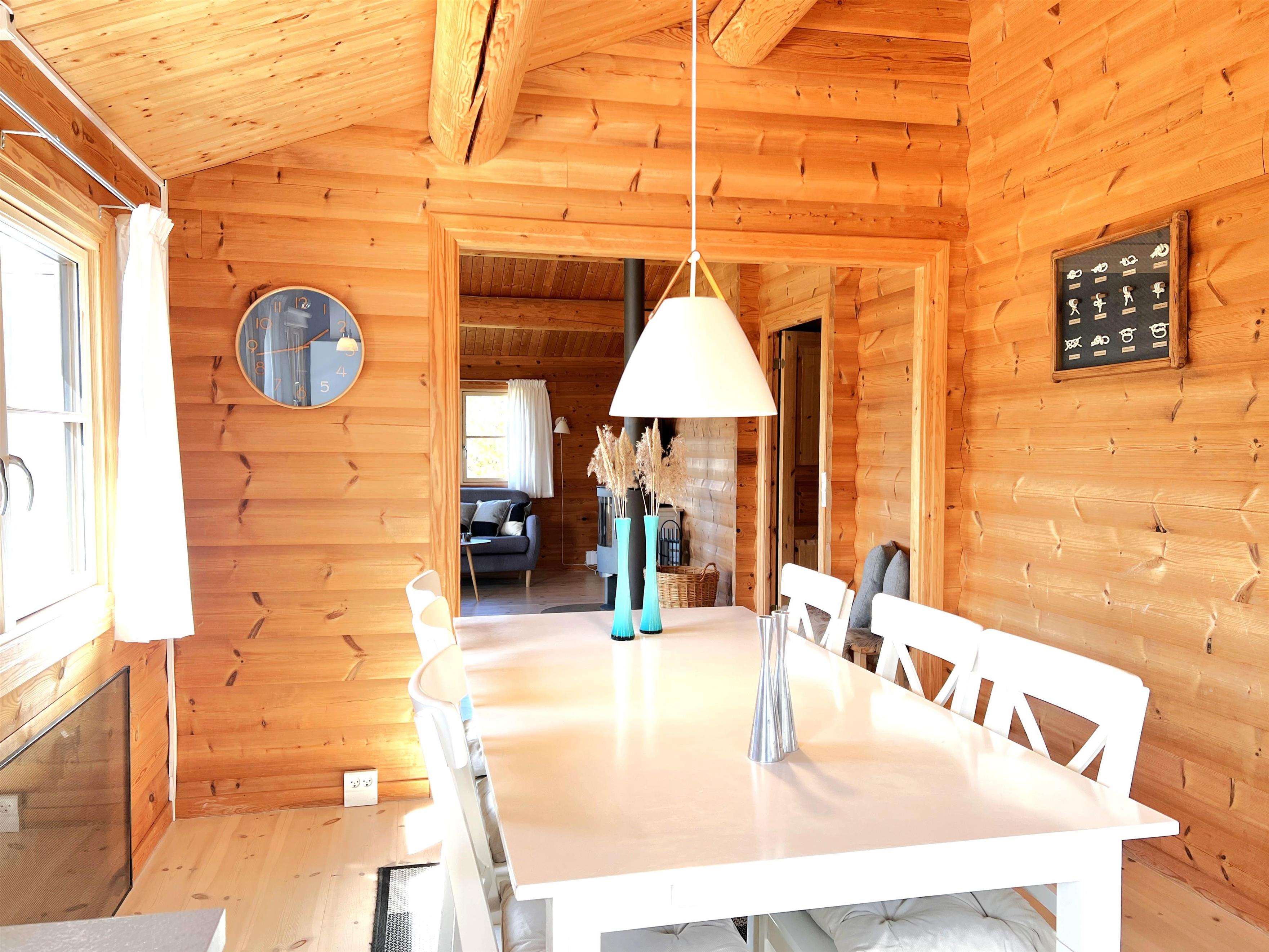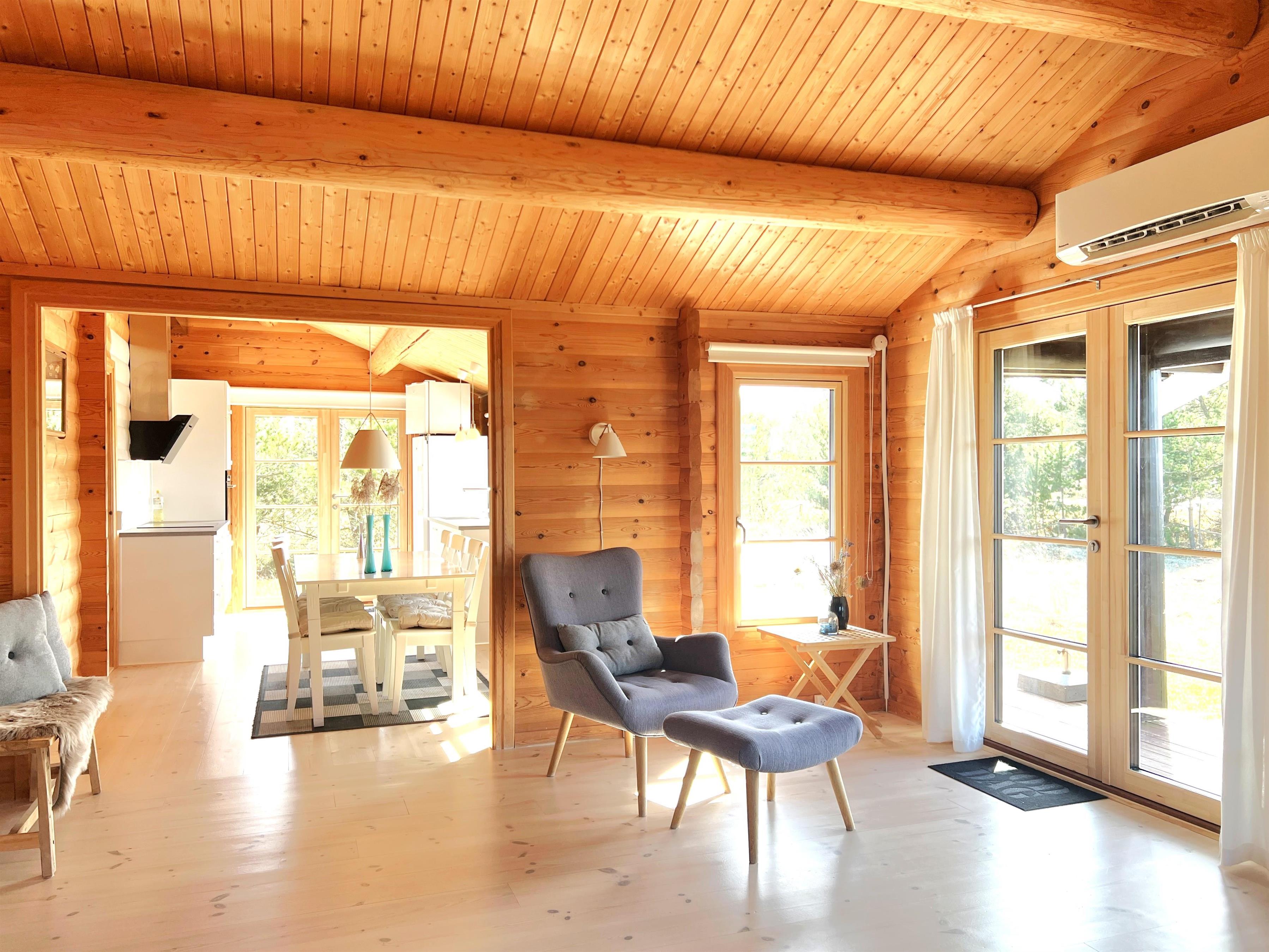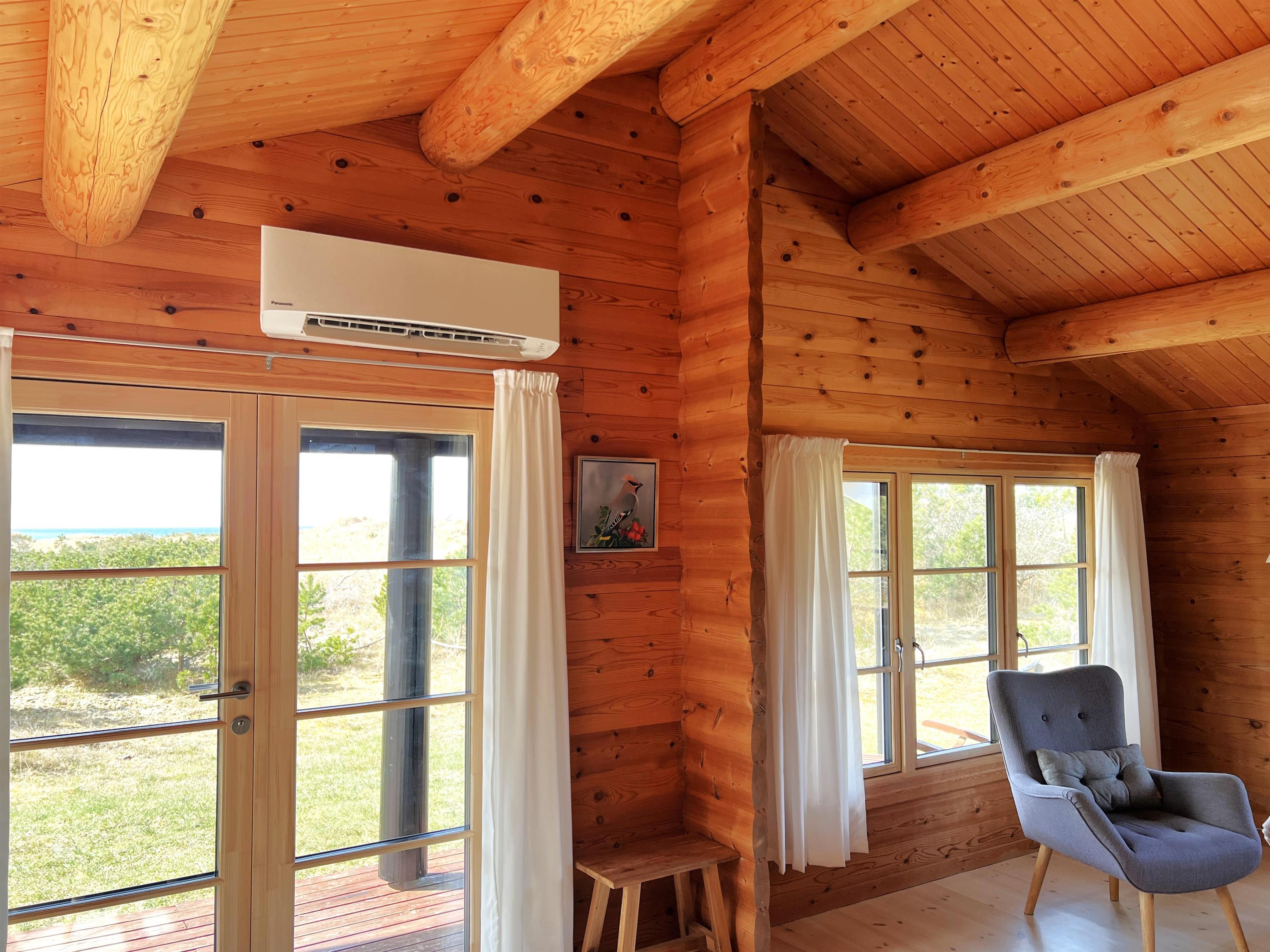 HAVUDSIGT. I læ bag de smukke klitter ligger dette skønne bjælkehus med en helt vidunderlig udsigt til Kattegats blå bølger. Fra huset går en lille privat sti ret ud til Læsøs måske bedste badestrand Kongestranden.
