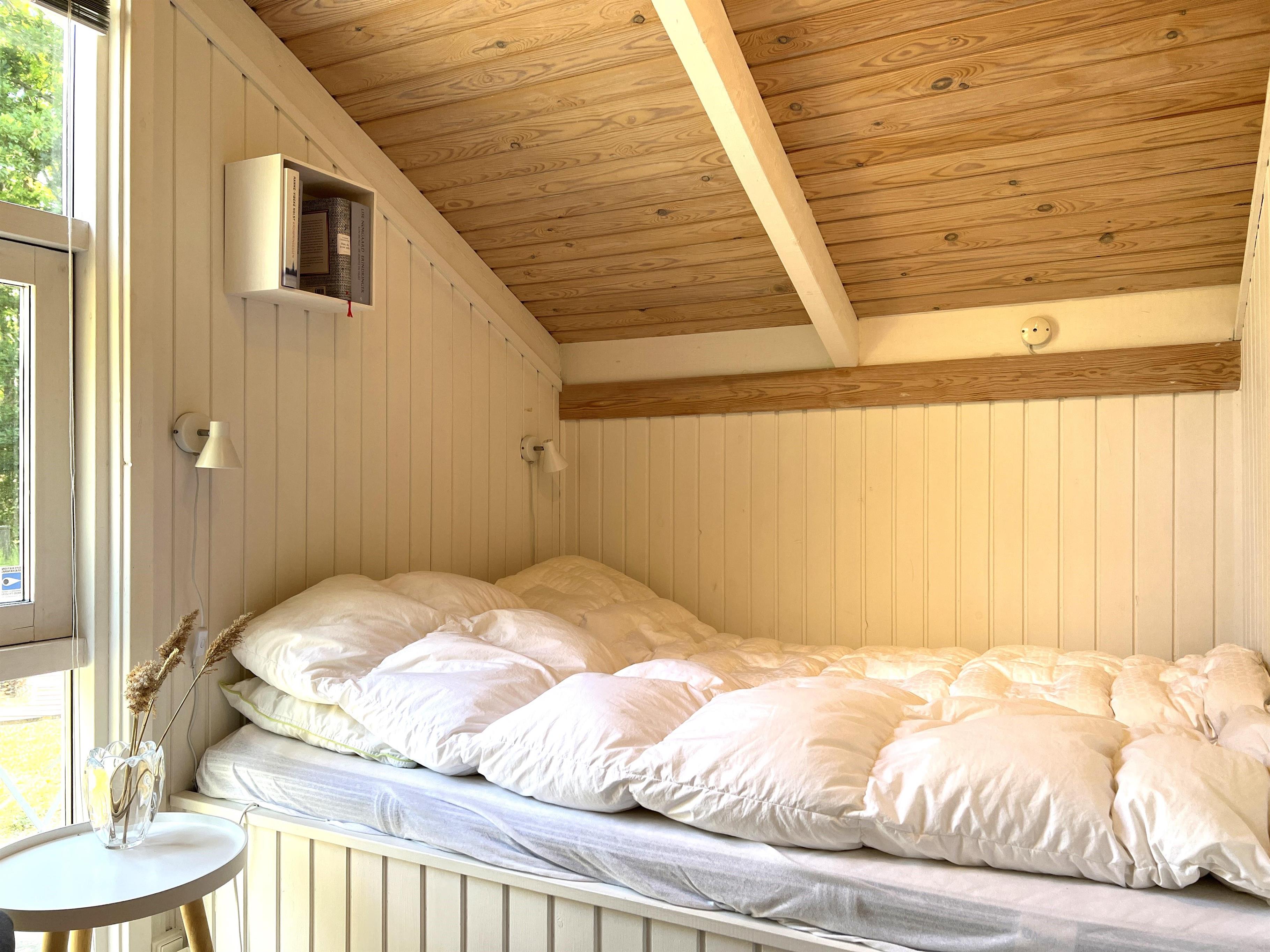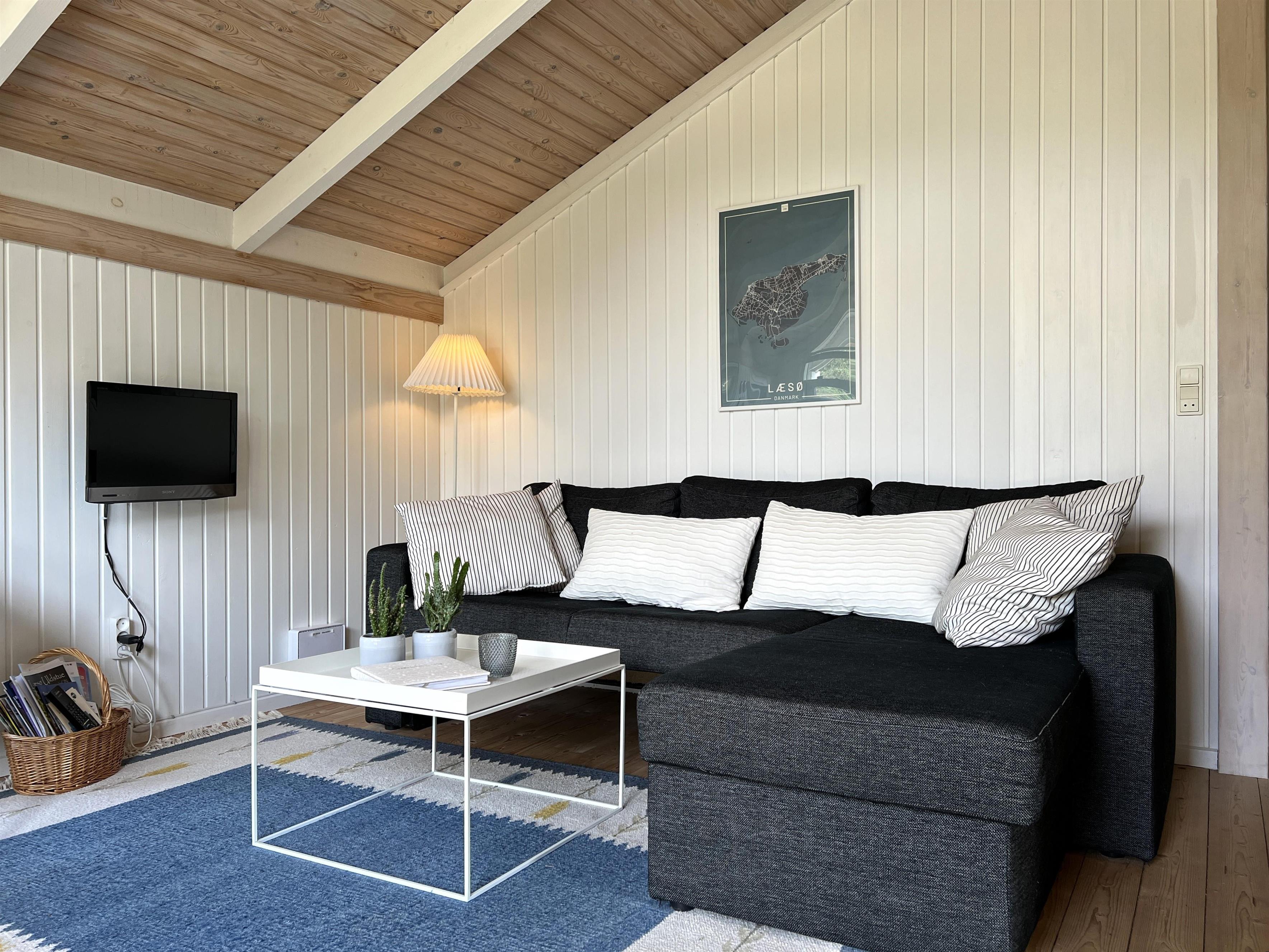 Skønt velplejet feriehus i Vesterø med dejlig beliggenhed på lyng/naturgrund. Hyggeligt køkken med spiseplads, åbent til en lys sydvendt stue, der er indrettet med behagelige møbler. To soveværelser, hvor et er med dobbeltseng (140x195), og et med slå ud sovesofa og en køjeseng. Fint badeværelse med brus.