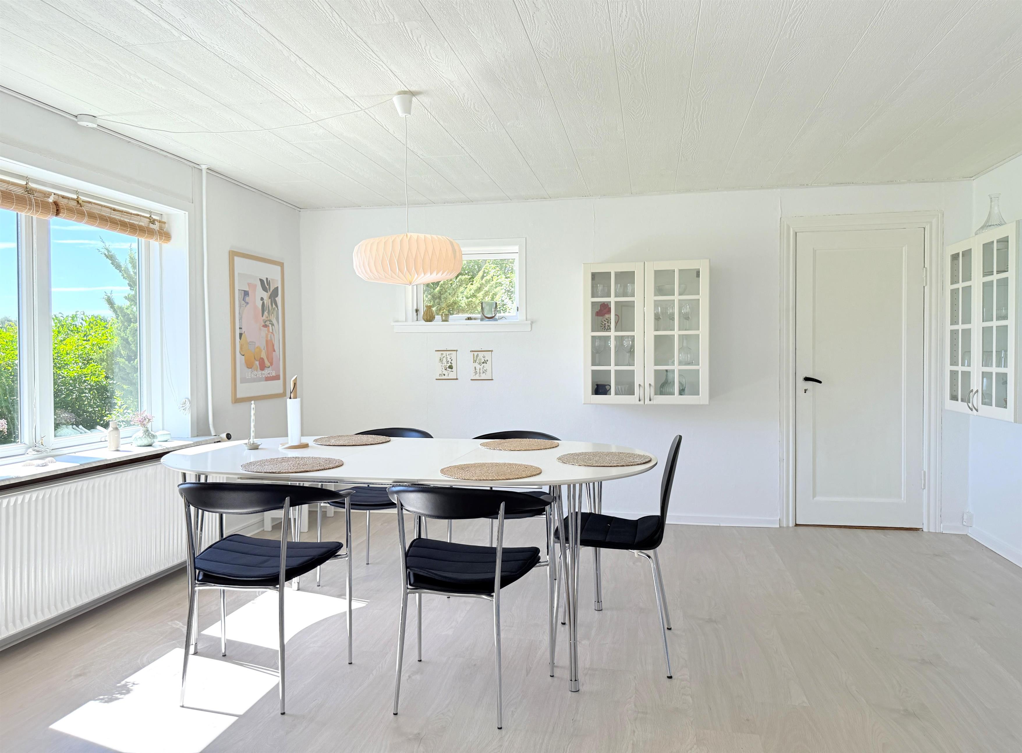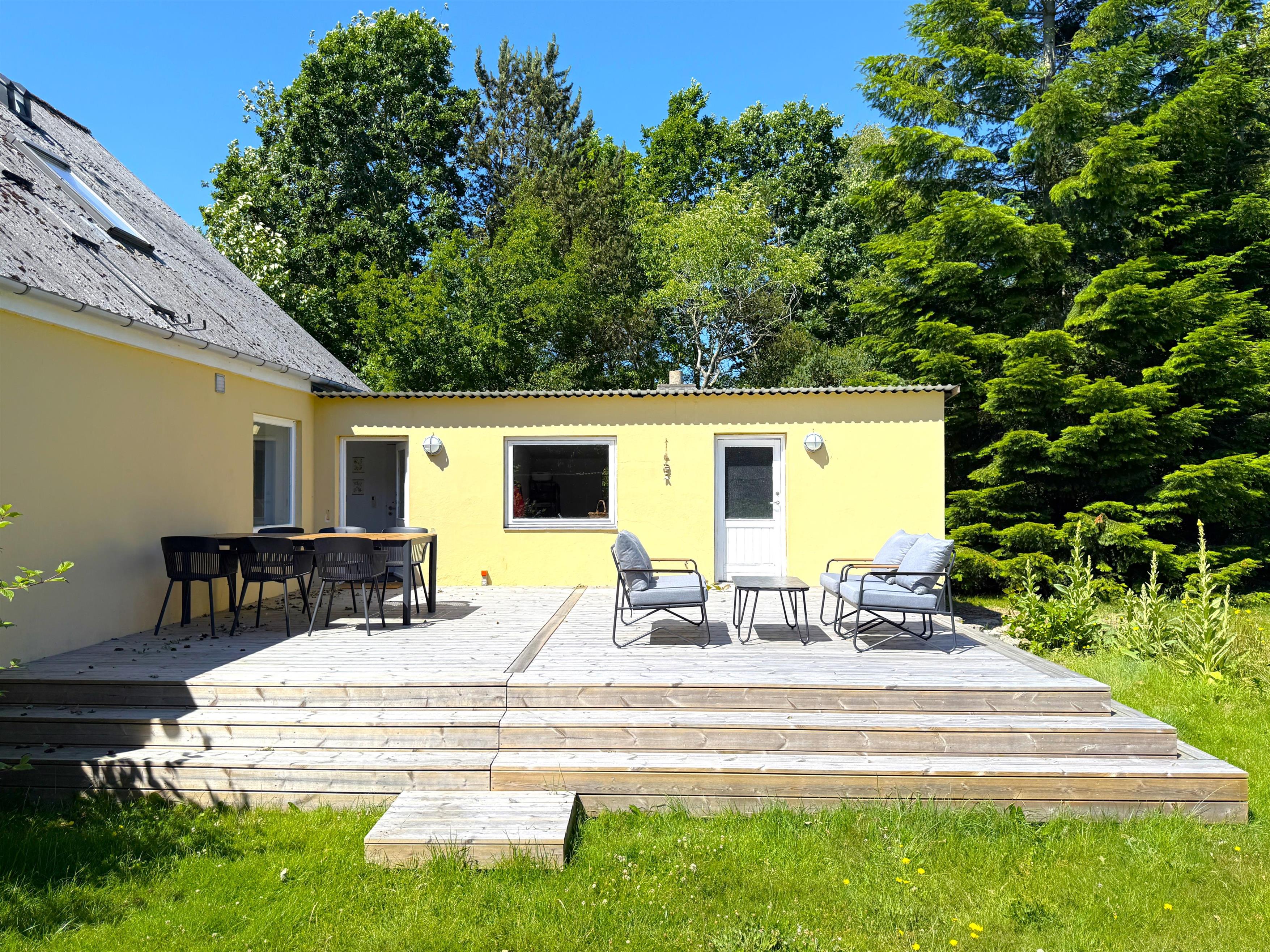 NYT hos Team Læsø. Dette dejlige feriehus, som er renoveret i 2023, ligger på en stor, flot naturgrund og fremstår med sine mange kvadratmeter yderst indbydende. Huset er lyst og rummeligt med smagfuld indretning. Der er et stort køkken i åben forbindelse med spisestue og sofaafdeling med TV. Fra køkkenet er der udgang til stor, lækker terrasse med flere solkroge og havemøbelsæt samt udsigt over den dejlige, store grund. Her kan både familie og hund hygge sig, og husets grill kan benyttes. Der er to store soveværelser med dobbeltsenge og et soveværelse med to enkeltsenge i feriehuset. Fint badeværelse med brus og badekar.