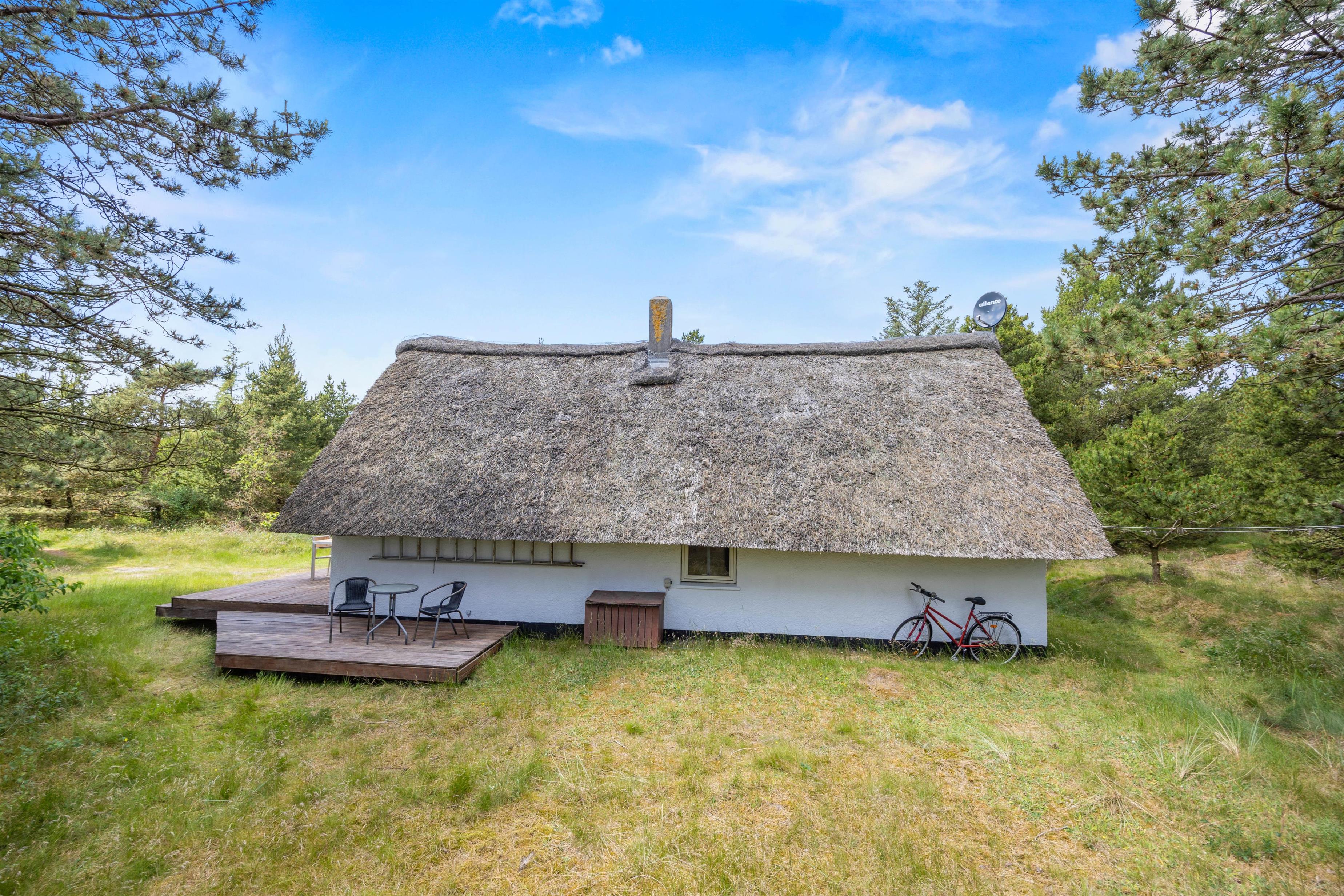 Det stråtækte sommerhus i Vesterhede, sydenden af Rømø, ligger kun 900 meter fra Vadehavet, hvilket gør det let at tage en forfriskende morgen- eller aftentur langs vandet. Den åbne terrasse og naturgrunden på godt 2800m2 giver masser af plads til ophold i det fri. Tag solbad i liggestolene, eller træk jer tilbage i havemøblerne imens børnene går på opdagelse på naturgrunden. Tænd op i grillen til aftenen, og nyd et lækkert grillmåltid sammen, imens skyggerne bliver lange.