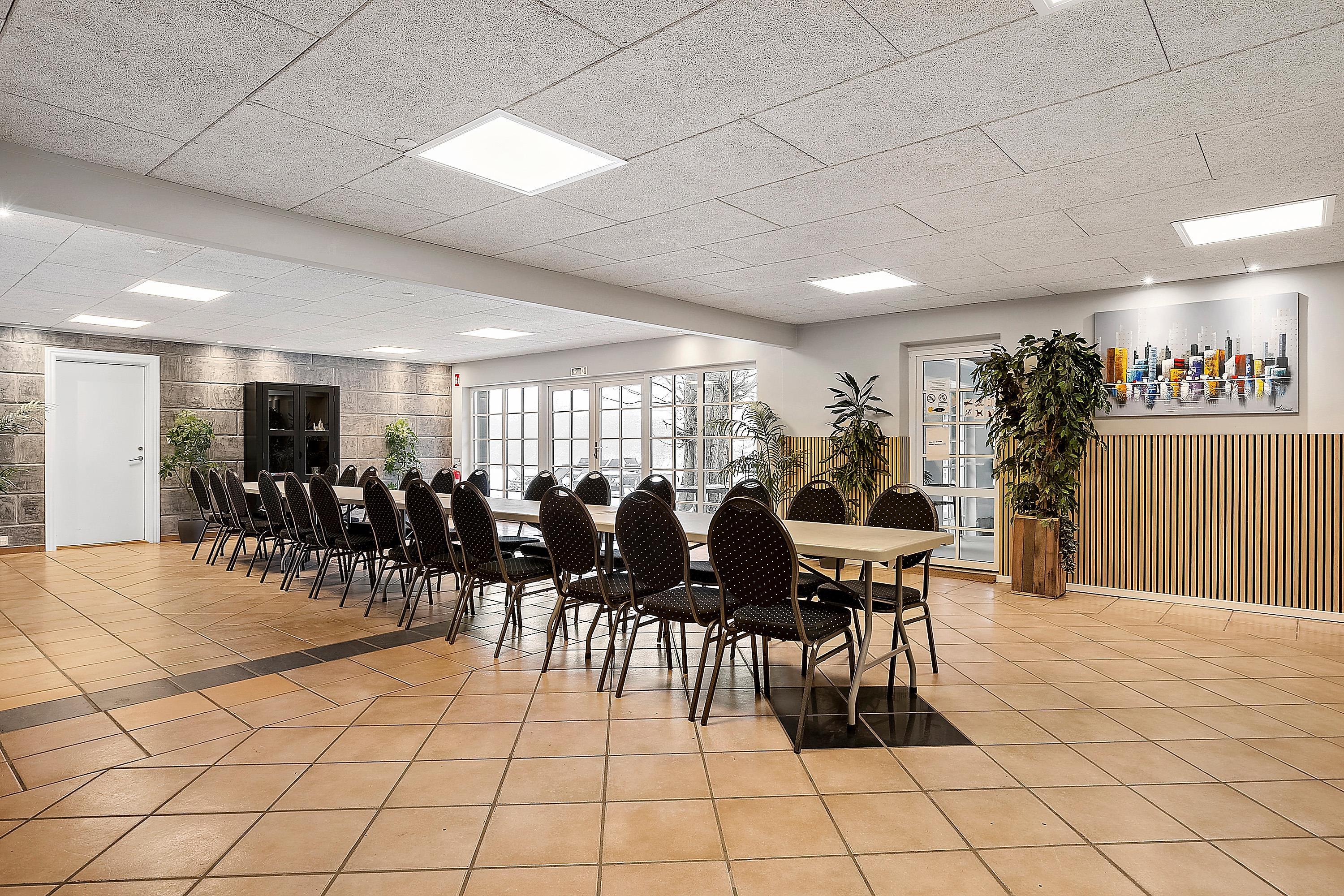 Der er også mulighed for at holde et større arrangement, idet huset kan lejes sammen med nabohuset og et partytelt. Derved kan der blive plads til 40 overnattende gæster. Se evt. hus M642501.