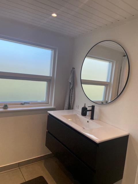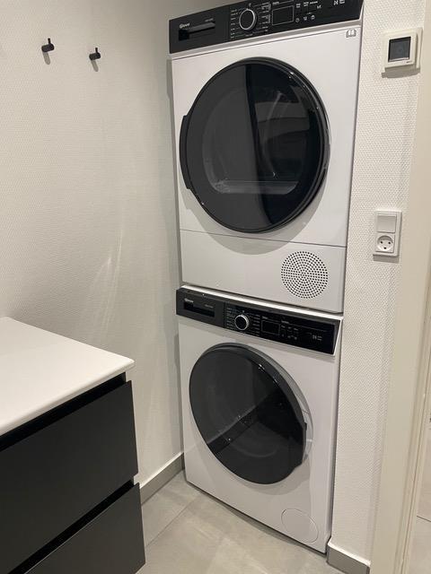 Huset har to badeværelser med brusebad og toilet. Her er også vaskemaskine og tørretumbler.