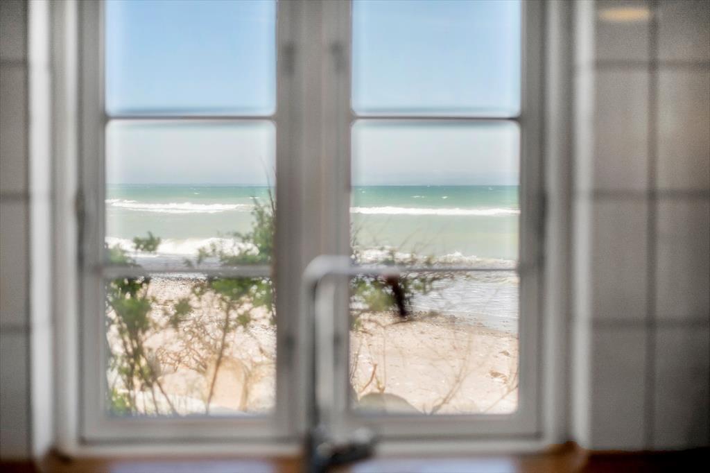 Strandhus: Feriehuse med helt unik beliggenhed, idet huset næsten ligger i strandkanten og fordi der er havudsigt.