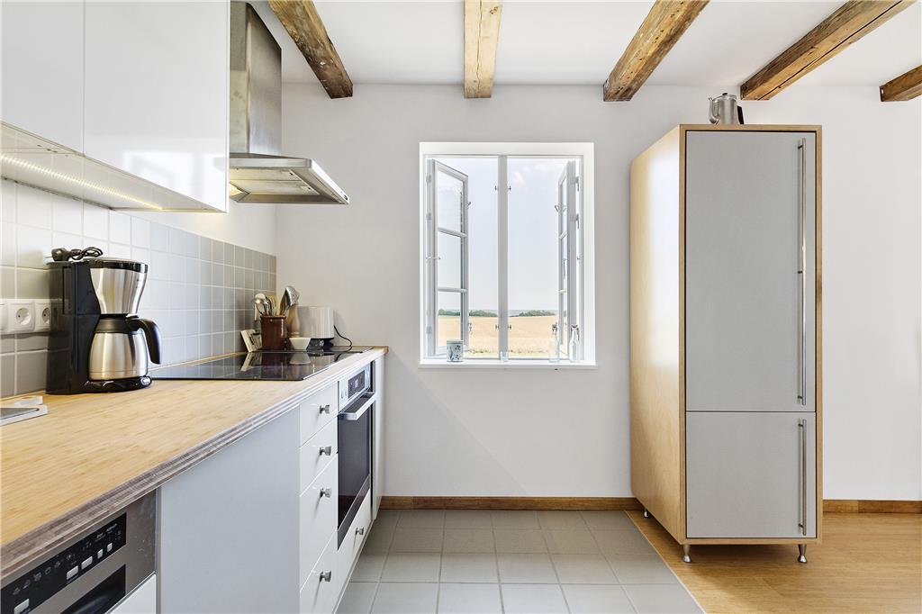 I køkkenet er der køleskab med frostboks, komfur med 4 kogeplader og ovn, opvaskemaskine, elkedel og kaffemaskine, samt alt øvrigt køkkengrej og diverse service.