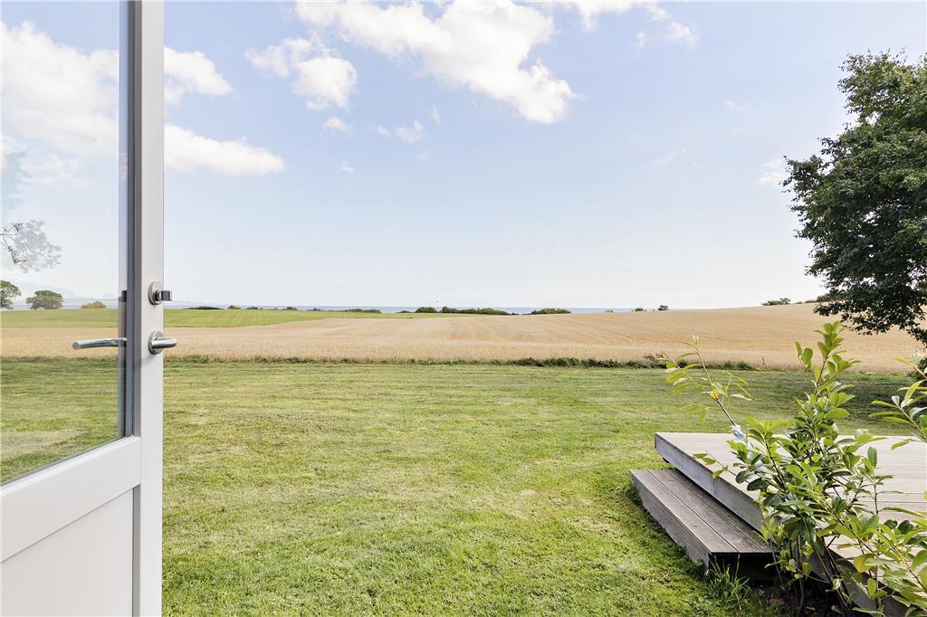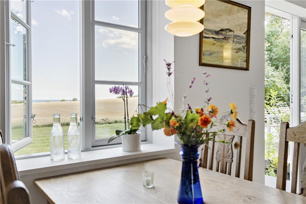 Fantastisk lejlighed beliggende på firelænget gård med 180 graders havudsigt og total Morten Korch stokrose idyl. Man drejer fra den asfalterede vej, og ind på en lille grusvej, og efter få sekunder viser der sig en helt fantastisk panorama udsigt til Møns Klint og Østersøen. Vejen fører frem til denne dejlige firelængede gård, hvoraf den ene længe udlejes. Lejligheden ligger tæt på Rytsebæk Strand og gode fiskemuligheder. Dejlig have med havemøbler og total havudsigt – hvem vil ikke gerne vågne op til dette skønne paradis og sidde her og nyde morgenkaffen, eller nyde de lange sommeraftener med et godt glas vin og lidt hyggelig mad på grillen. Bedre beliggenhed findes bare ikke lige ud til åbne marker og fantastisk havudsigt.