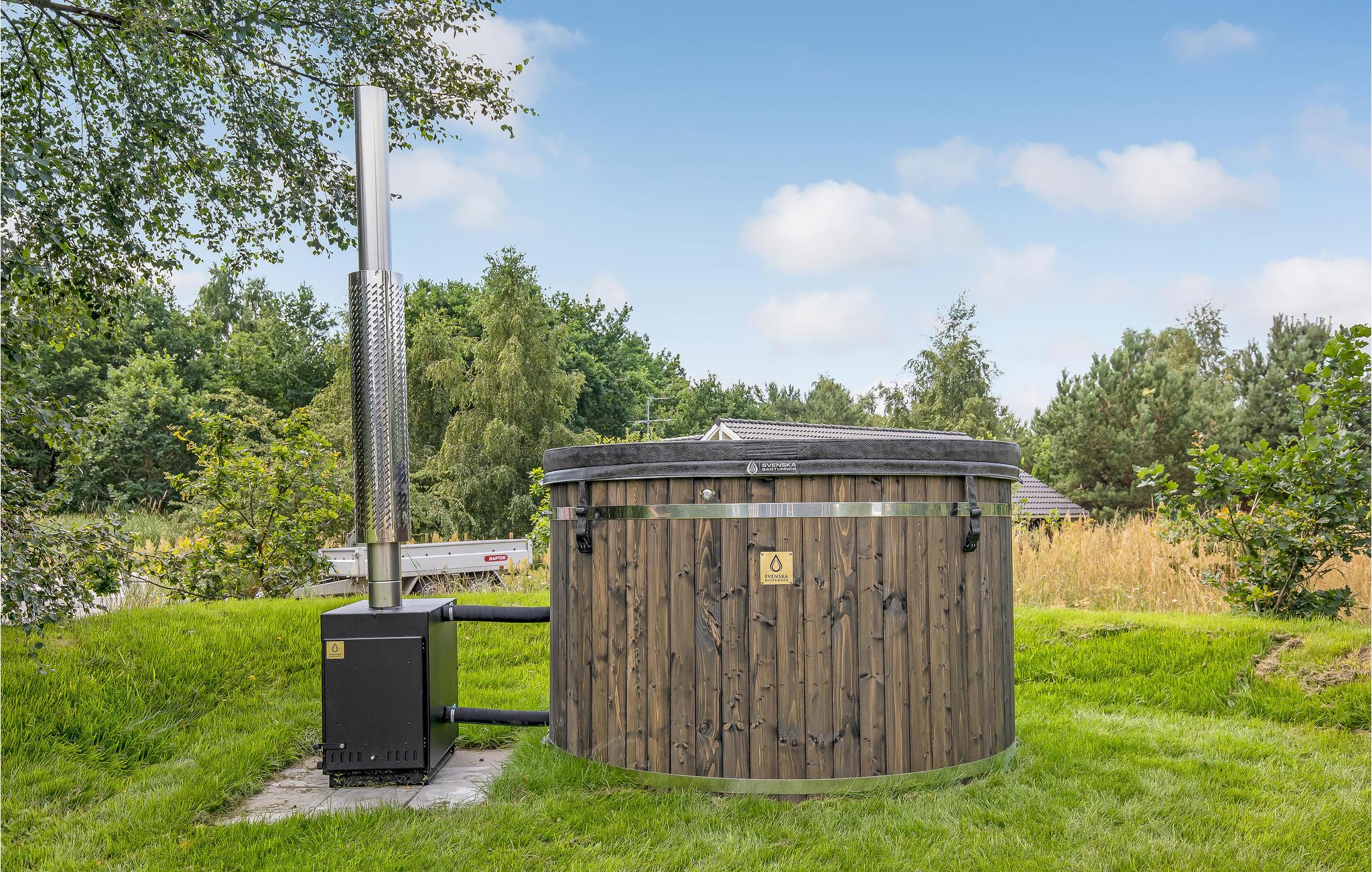 Sæt jer til rette i vildmarksbadet med plads til seks personer og dæk op til nogle skønne retter direkte fra grillen. Der er også shelter og bålplads på grunden, et udendørsspa, som op til ti personer kan sidde i, og to fodboldmål, der står klar til en kamp.