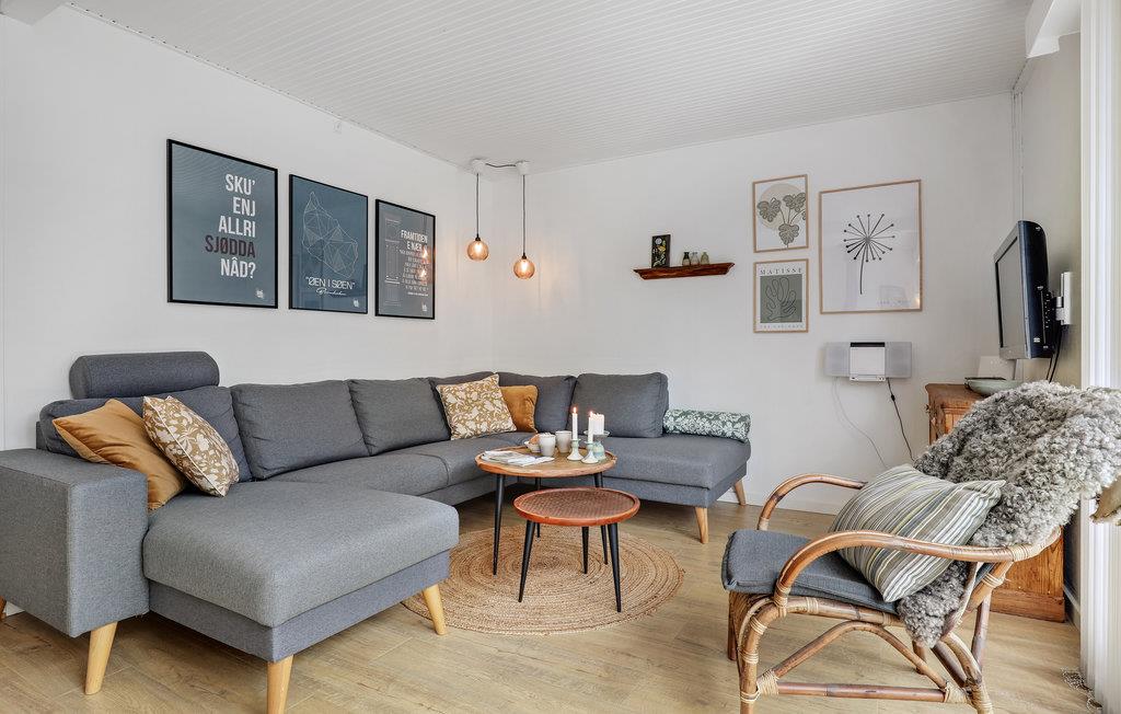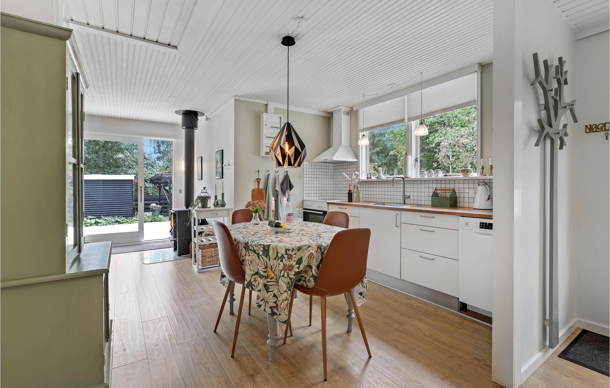 Sommerhusets hjerte er den attraktivt indrettede opholdsstue, hvor I kan se film i komfortable møbler, høre radio eller musik og nyde varmen og den hyggelige atmosfære fra brændeovnen i køligere sæsoner. I den veludstyrede køkkenafdeling med spiseplads kan I nemt tilberede dejlige feriemåltider og samtidigt samtale med dem, der slapper af i stuen.
