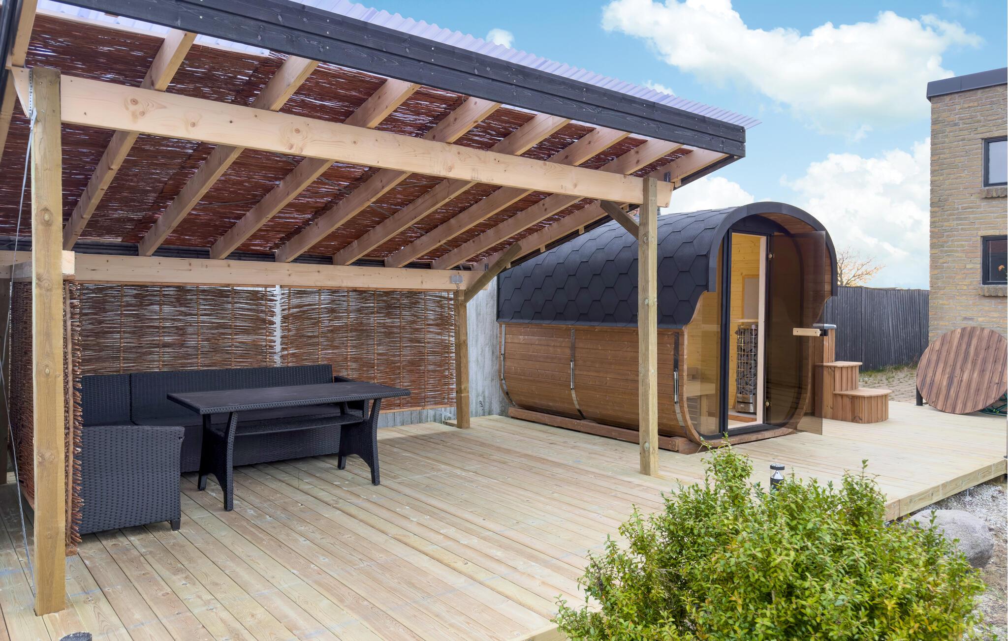Nyd den åbne, indbydende atmosfære i dette feriehus med udendørs wellness og kort afstand til strand.