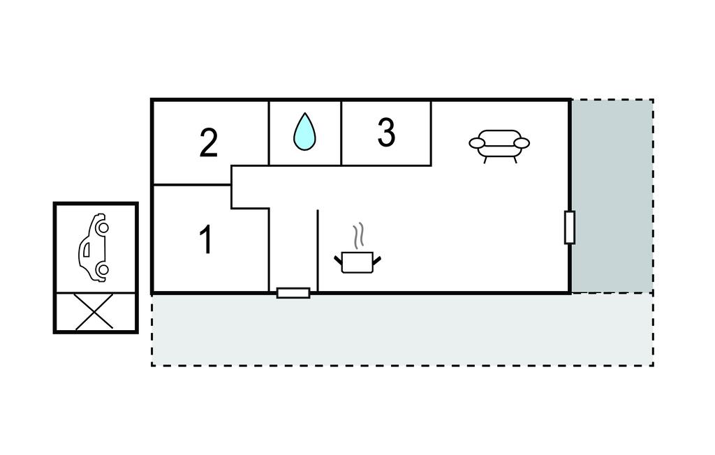 Soveværelse (nr. 3) - 2 Sovepladser. (Sofa, madras eller lignende).