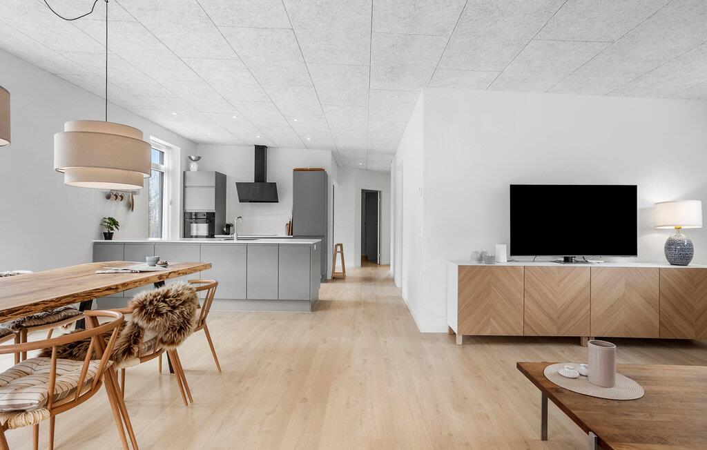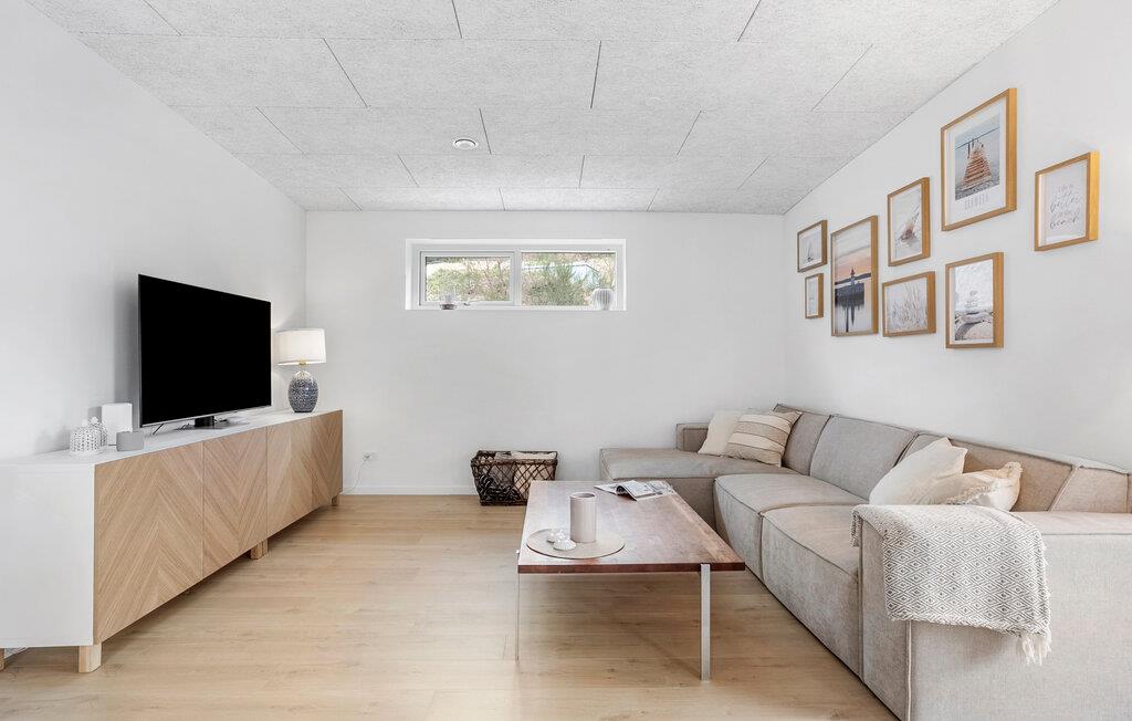 Velkommen til dette indbydende sommerhus, hvor bløde farver og naturlige materialer skaber en harmonisk atmosfære. Skab lækre måltider i køkkenet af høj kvalitet og Hold dem ved det stilfulde spisebord med udsigt til det grønne. Slap af i den komfortable sofa og glæd jer til hyggelige aftener med fjernsyn eller afslappende timer med læsning.