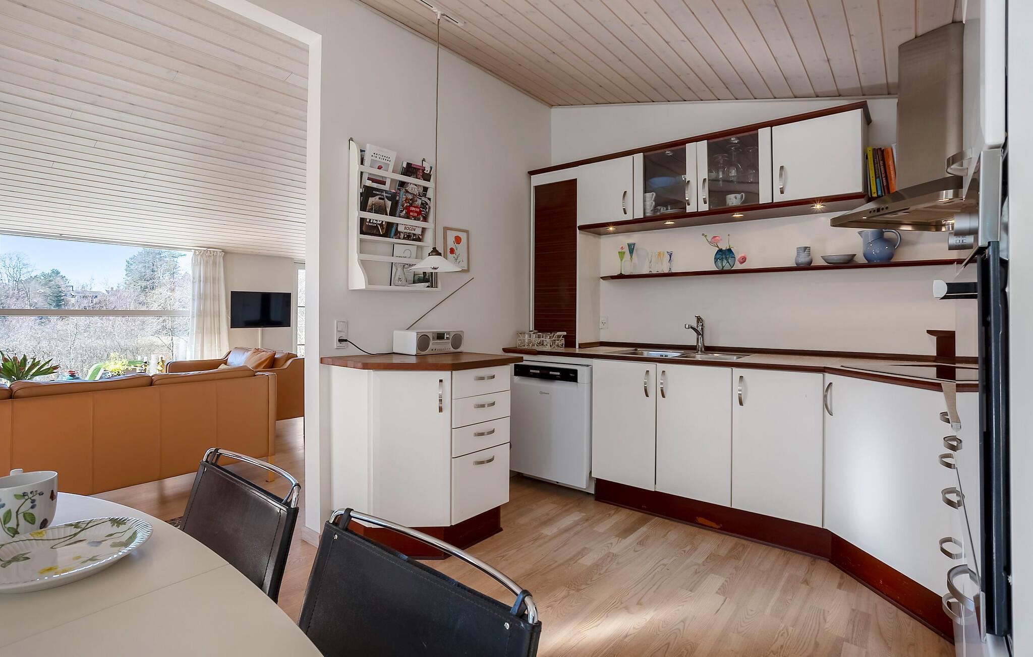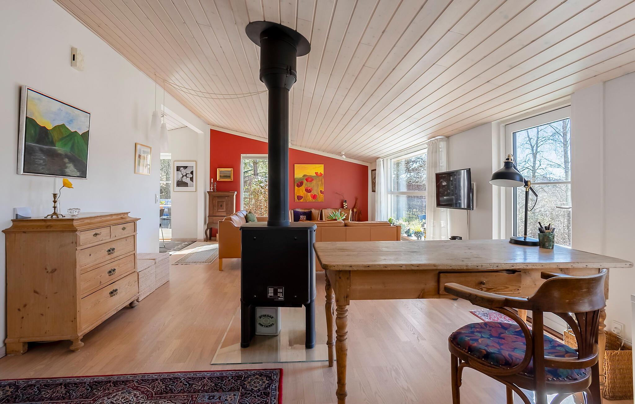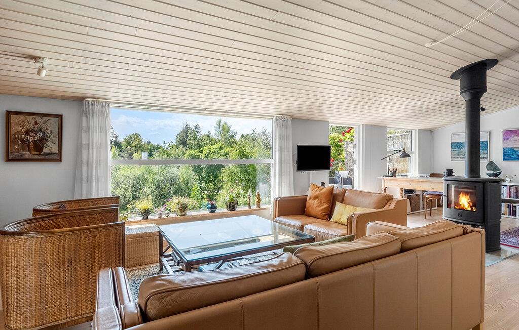 Velkommen til dette lyse og rummelige feriehus, der lægger op til nogle hyggelige og afslappende dage med familien. Nyd måltiderne sammen rundt om spisebordet, lyt til den blide knitren fra brændeovnen, mens I snakker i den hyggelige stue og kig ud på haven, mens I nipper til et glas te.