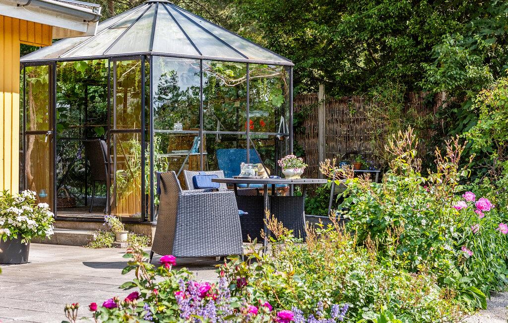 Den flot anlagte naturgrund er en skøn oase, hvor I sikkert kan få en masse timer til at gå. Glæd jer til en solrig morgenmad under åben himmel, den fredfyldte atmosfære, mens I læser en god bog i orangeriet og mange stemningsfulde aftener omkring grillen.