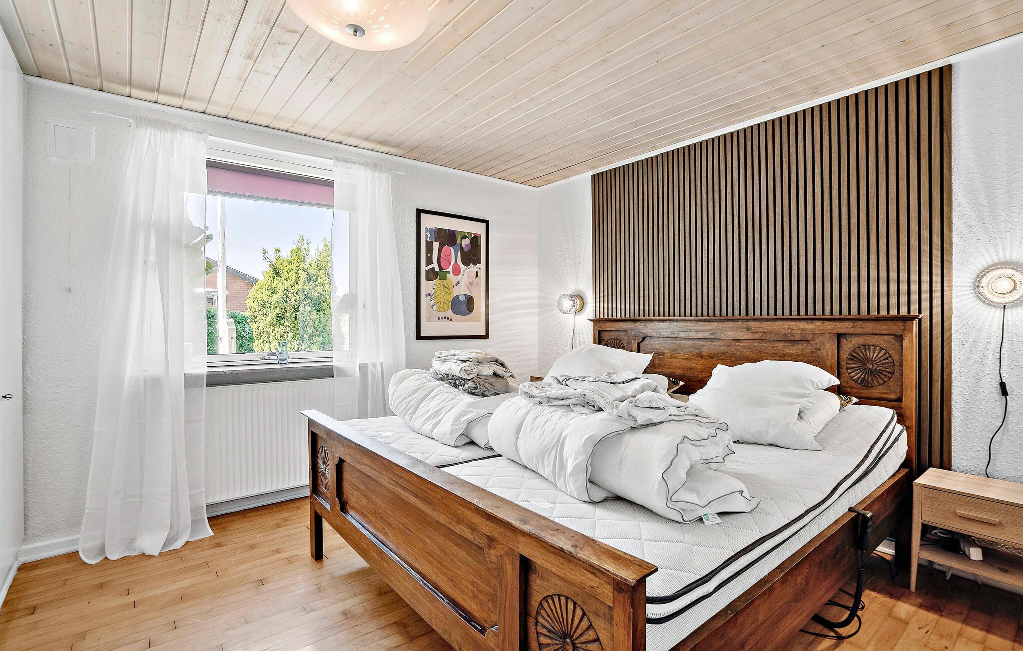 Tag en pause fra hverdagens stress og jag og rejs til Fiskbæk, der ligger tæt på Skjern, og hvor I finder denne perle af en feriebolig. Indretningen prydes af velvalgte materialer, velholdte trægulve og et komfortabelt møblement, der gør det nemt at slappe af med det samme, I lander efter en herlig dag på farten. Køkkenet er moderne og fuldt udstyret, så tag jer blot god tid med madlavningen, inden der dækkes op ved det hyggelige spisebord af træ. Hiv brætspillene frem efter aftensmaden eller træk over i sofaen med snacks og en god film, mens I lægger planer for de kommende dage.